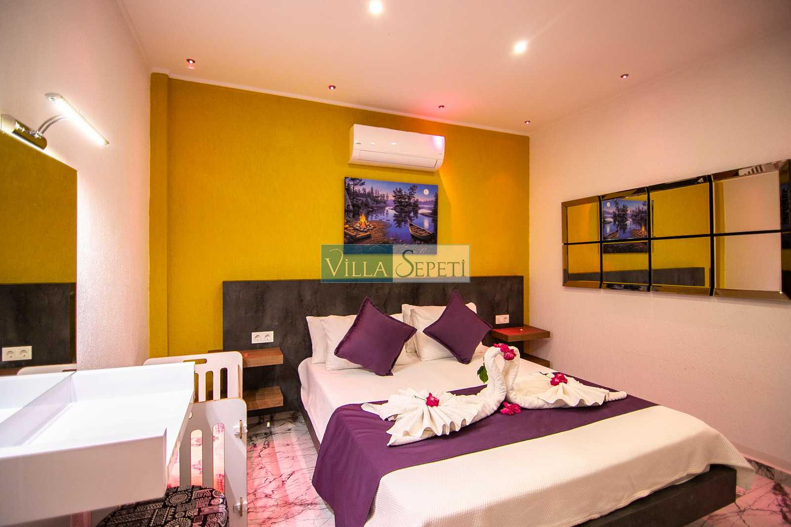 Genel not: Doğa içerisinde konuma sahip olan villalarımızın tamamı böcek ve haşereler için düzenli olarak temizlenmekte ve ilaçlanmaktadır. Doğa içerisinde konuma sahip olan evlerimizde, merkezde yer alan villalara nazaran böcek vb. çıkma ihtimali daha yüksektir. Bu not, bu evle ilgili değil doğa içerisinde konuma sahip olan tüm evlerin bilgilerinde yazılmaktadır.