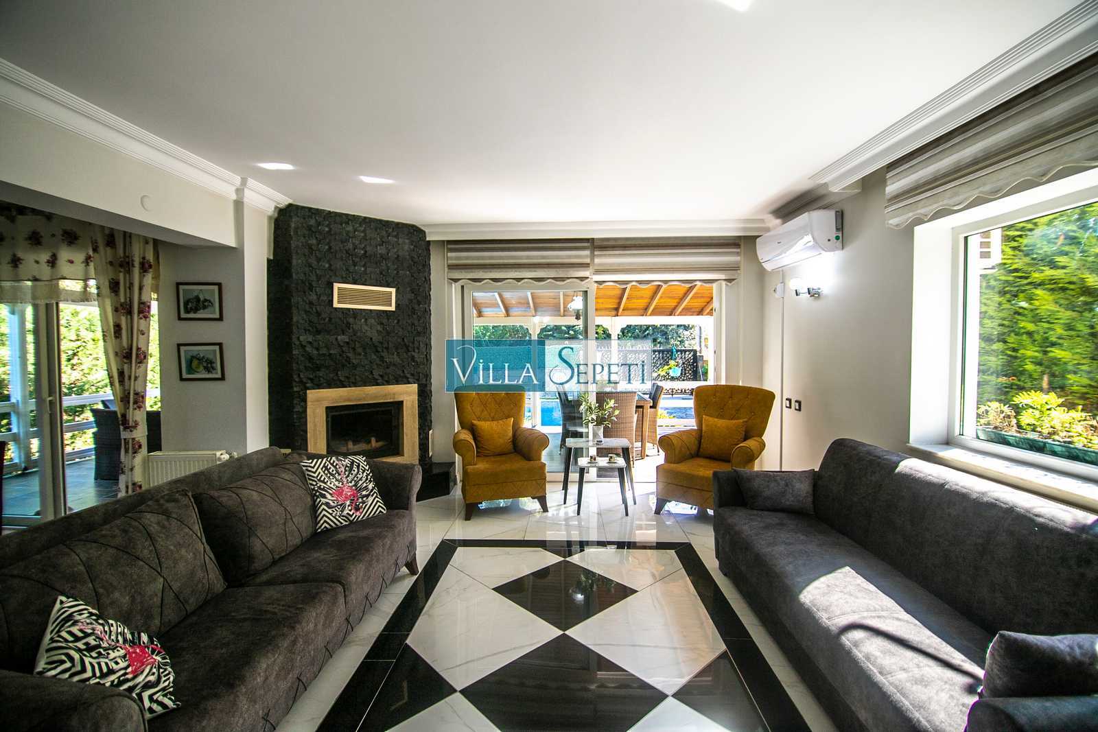 Villamız özenle bakımı yapılan geniş ve yemyeşil bir bahçeye sahip olup sessiz sakin bir konumda yer almaktadır. Oldukça keyifli bir kış bahçesi alanı ve şöminesi bulunan villamızın ayrıca 2 araçlık özel otopark alanı da bulunmaktadır.