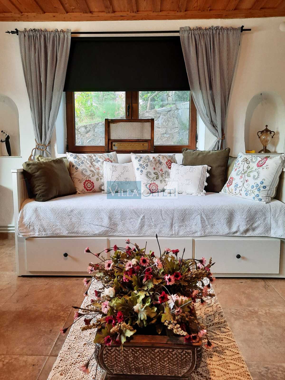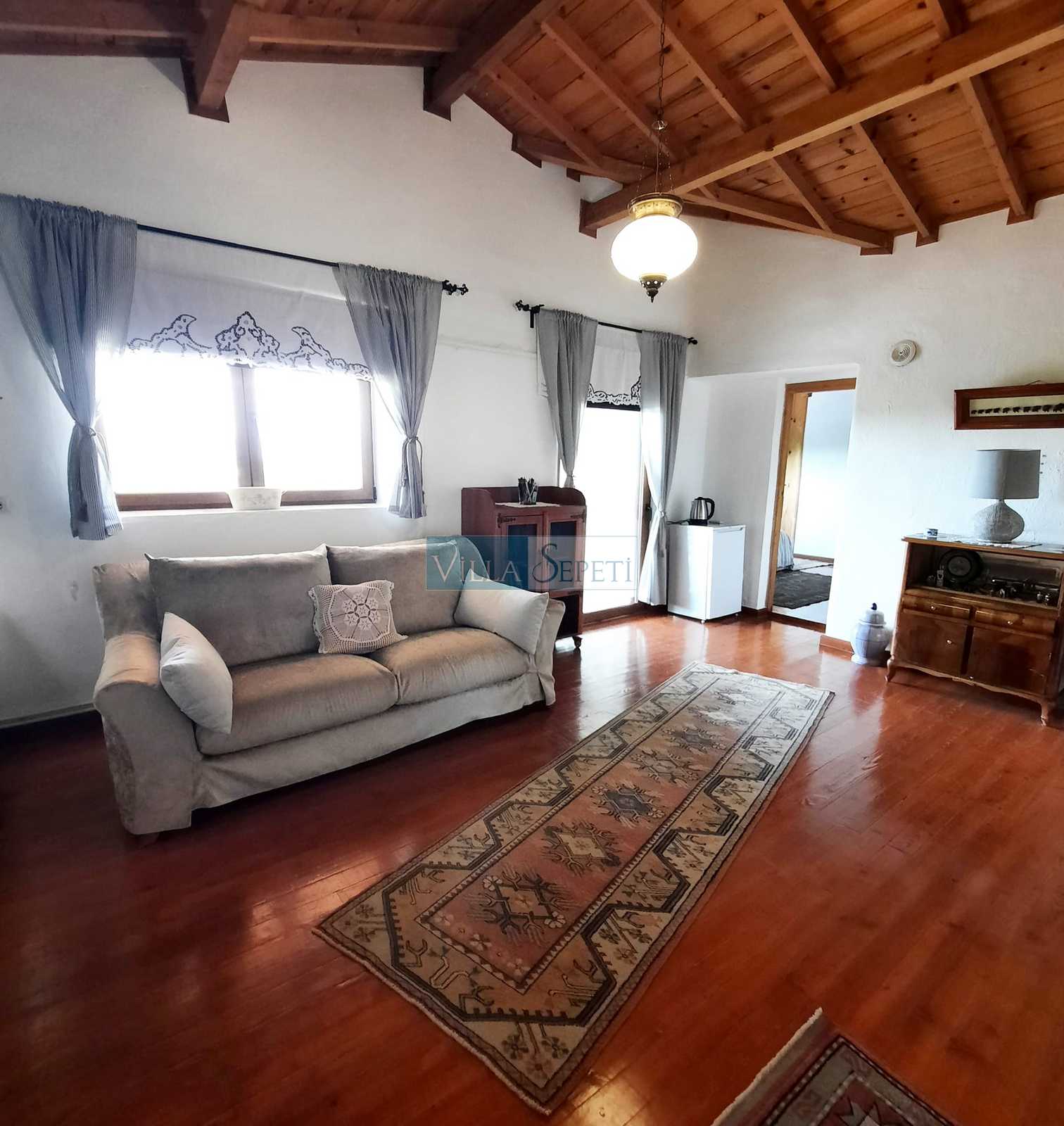 Tamamen doğanın içerisinde konumlanan villamız, dağın eteğinde bulunup çok geniş bir arazi içerisinde yer almaktadır. Bu alan içerisinde keyifli bir mangal alanı mevcuttur. Villamızın en önemli özelliklerinden birisi hem doğa içerisinde konumlanmış olması hem de merkeze yaklaşık 1 km uzaklıkta bulunmasıdır. Kalabalık aile gruplarına ve çocuklu aileler için oldukça uygundur.