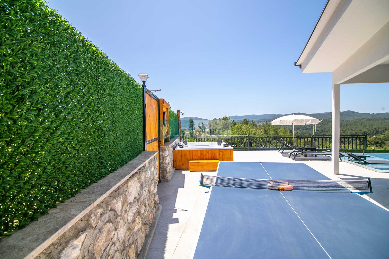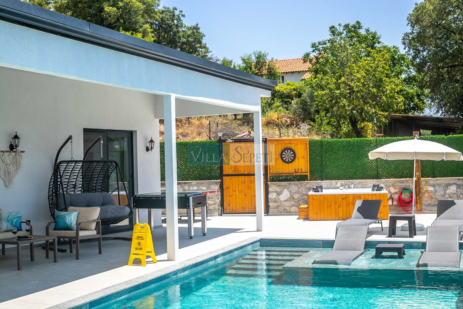 Villa Aqualis, yalnızca konaklama imkânlarıyla değil, sunduğu çeşitli aktivite alanları, çevreci yapısı ve donanımlı bahçesiyle misafirlerine benzersiz bir tatil deneyimi sunmaktadır. Geniş ve özenle düzenlenmiş bahçe alanı içerisinde yer alan geleneksel Türk hamamı, dinlenme ve arınma arayışında olan misafirler için ayrıcalıklı bir olanak sunarken; 4 kişilik açık hava jakuzisi, tatilinize konfor ve lüks katmaktadır. Ayrıca masa tenisi, langırt, voleybol filesi, futbol kalesi, basketbol potası ve dart gibi çeşitli oyun alanları sayesinde hem çocuklar hem de yetişkinler gün boyu keyifli vakit geçirebilmektedir.