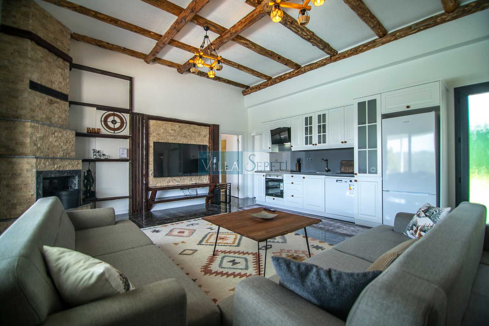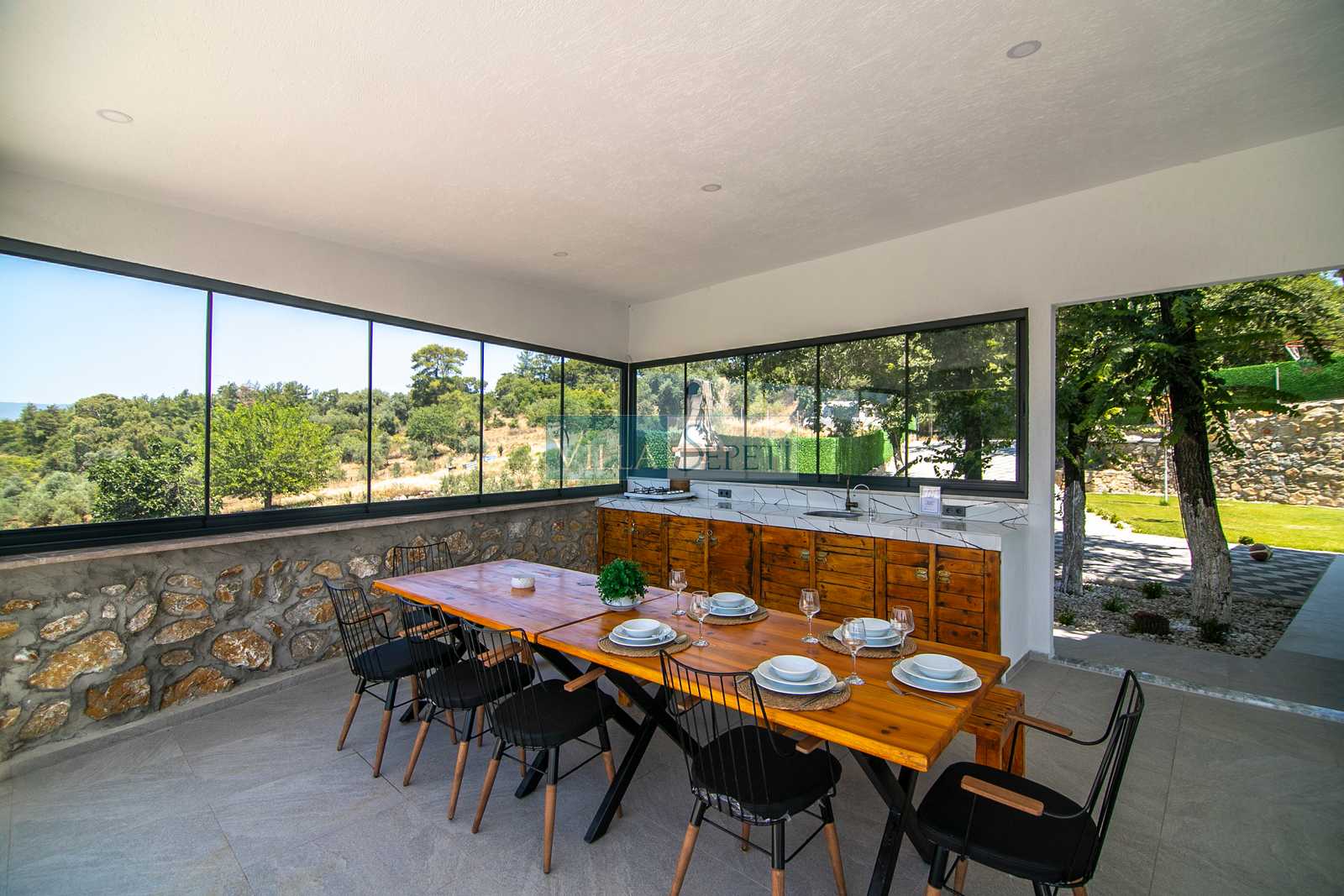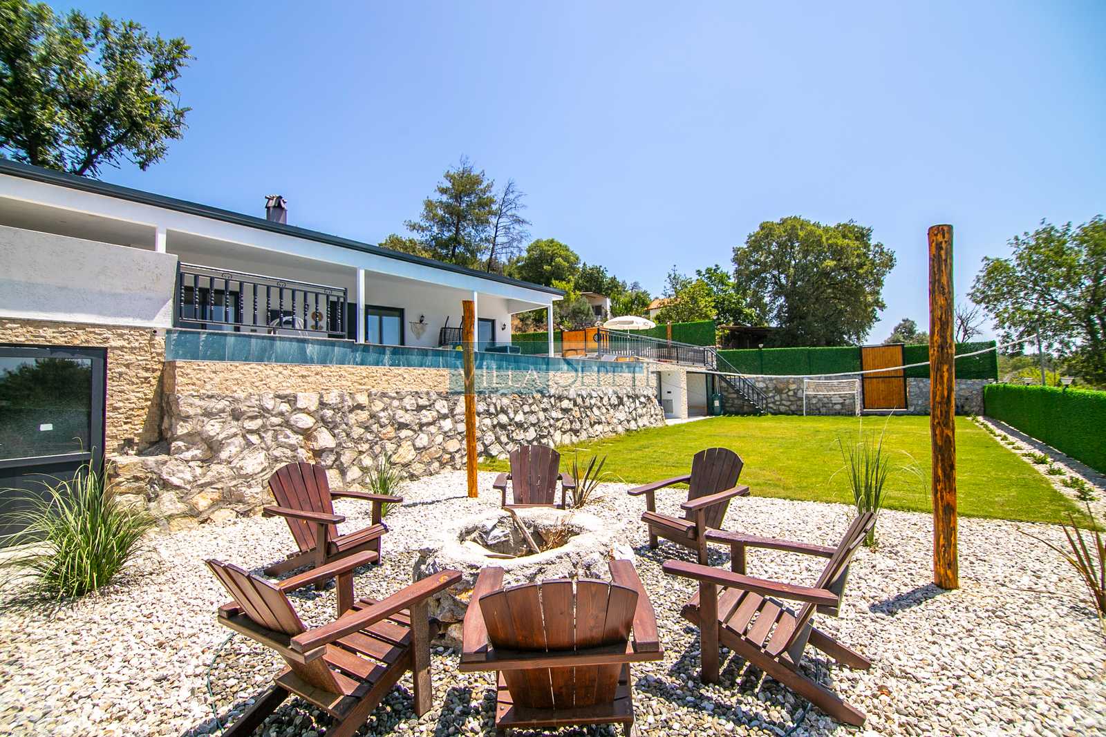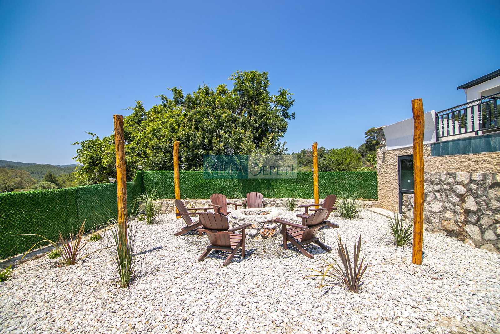 Bahçede yer alan ateş çukuru, özellikle akşam saatlerinde keyifli sohbetlere ev sahipliği yaparken, doğayla iç içe sıcak bir atmosfer oluşturur. Villanın veranda alanında yer alan küçük mutfak, açık alanda pratik yemek hazırlığı için konfor sunarken; barbekü alanı, açık havada yemek keyfini tercih eden misafirler için ideal bir alternatif oluşturmaktadır. Ayrıca özel otopark alanı sayesinde misafirler araçlarını güvenle park edebilmektedir.
