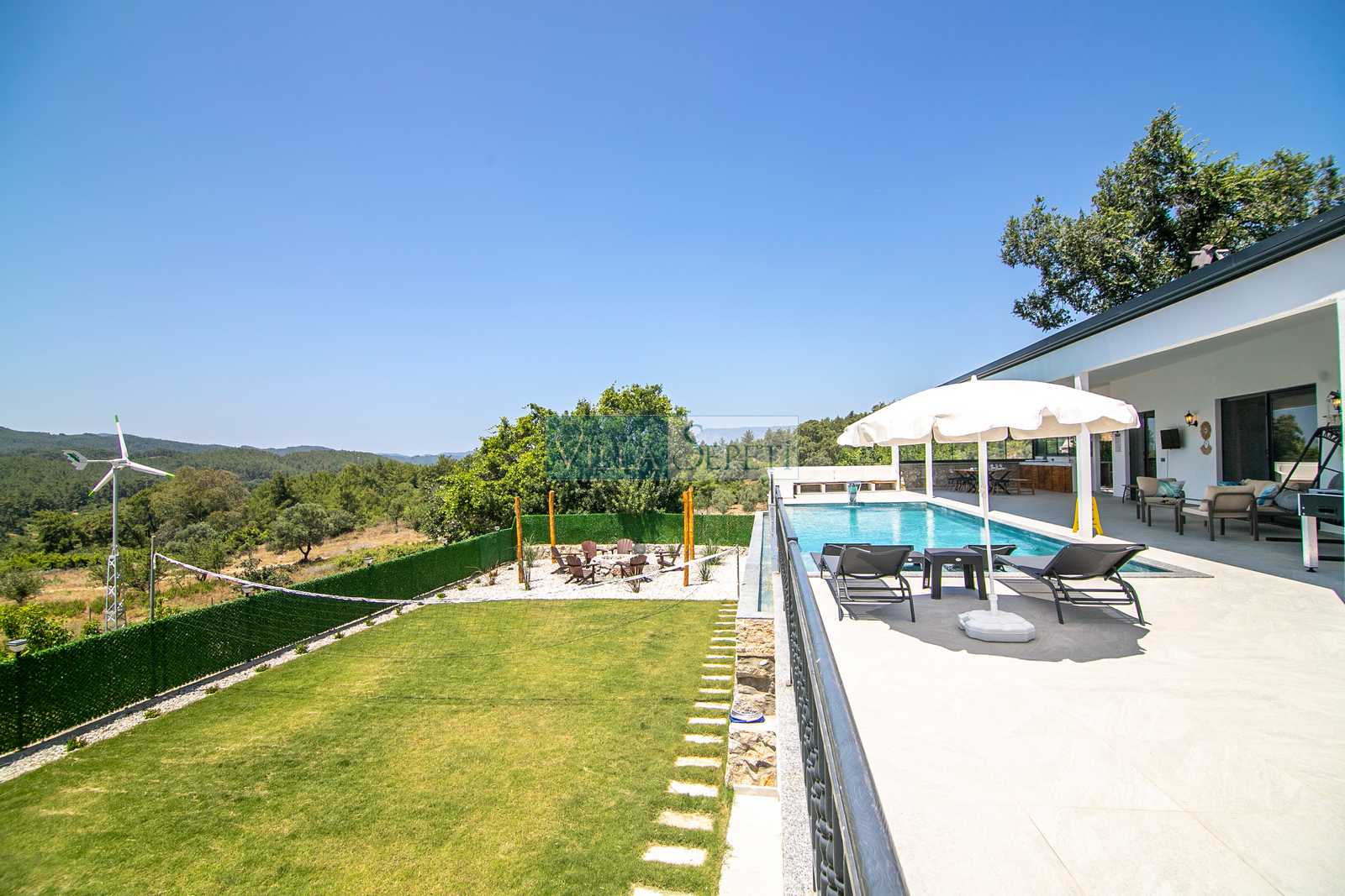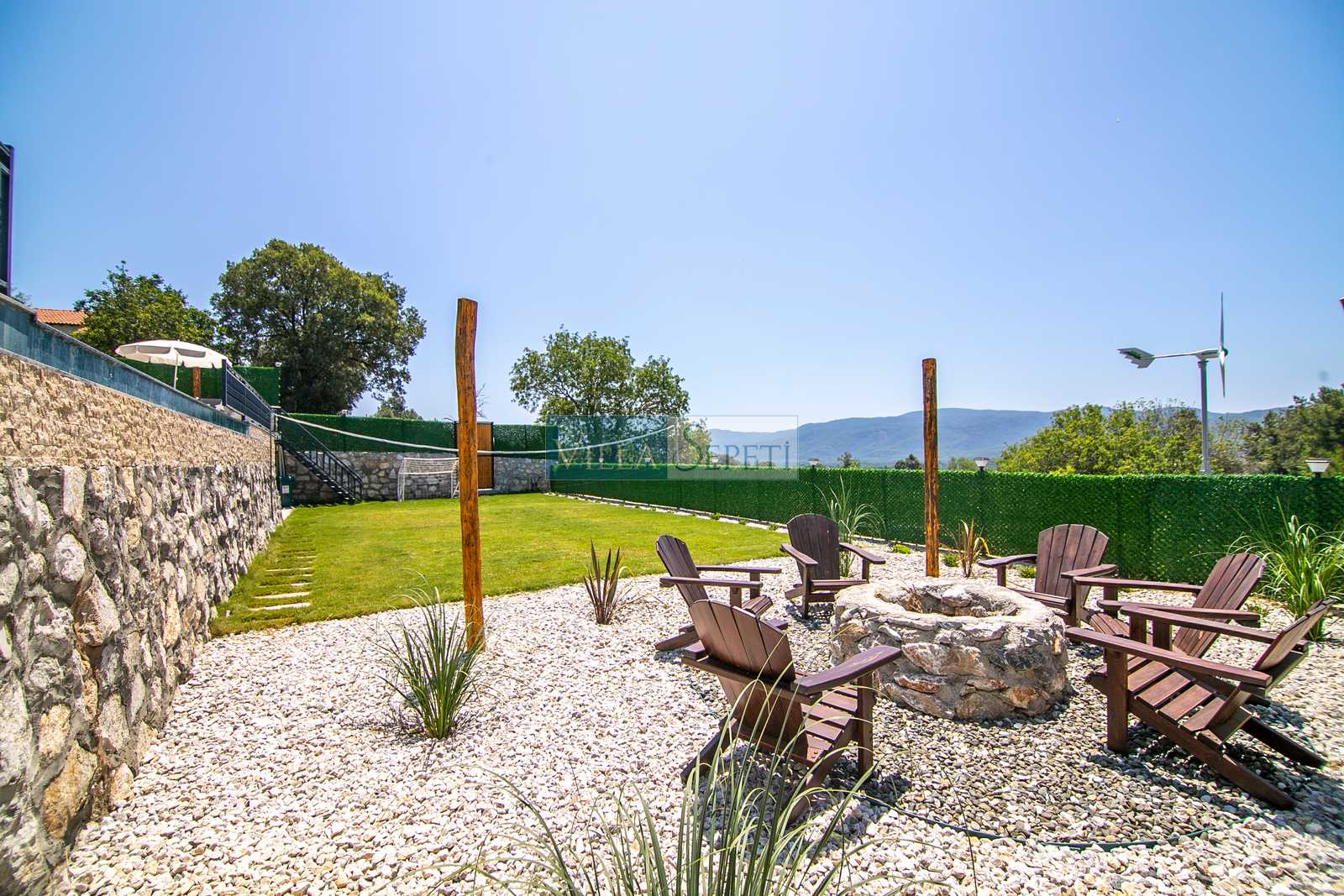 Villa Aqualis’in en dikkat çekici özelliklerinden biri ise enerji ihtiyacının güneş ve rüzgar enerjisiyle karşılanıyor olmasıdır. Bu yönüyle çevre dostu bir yaklaşımı benimseyen villa, sürdürülebilirlik ilkesi doğrultusunda doğaya duyarlı bir tatil alternatifi sunmaktadır. Konfor, eğlence ve çevre bilincini bir araya getiren bu villamız, her yaştan misafir için unutulmaz bir konaklama deneyimi vadetmektedir.