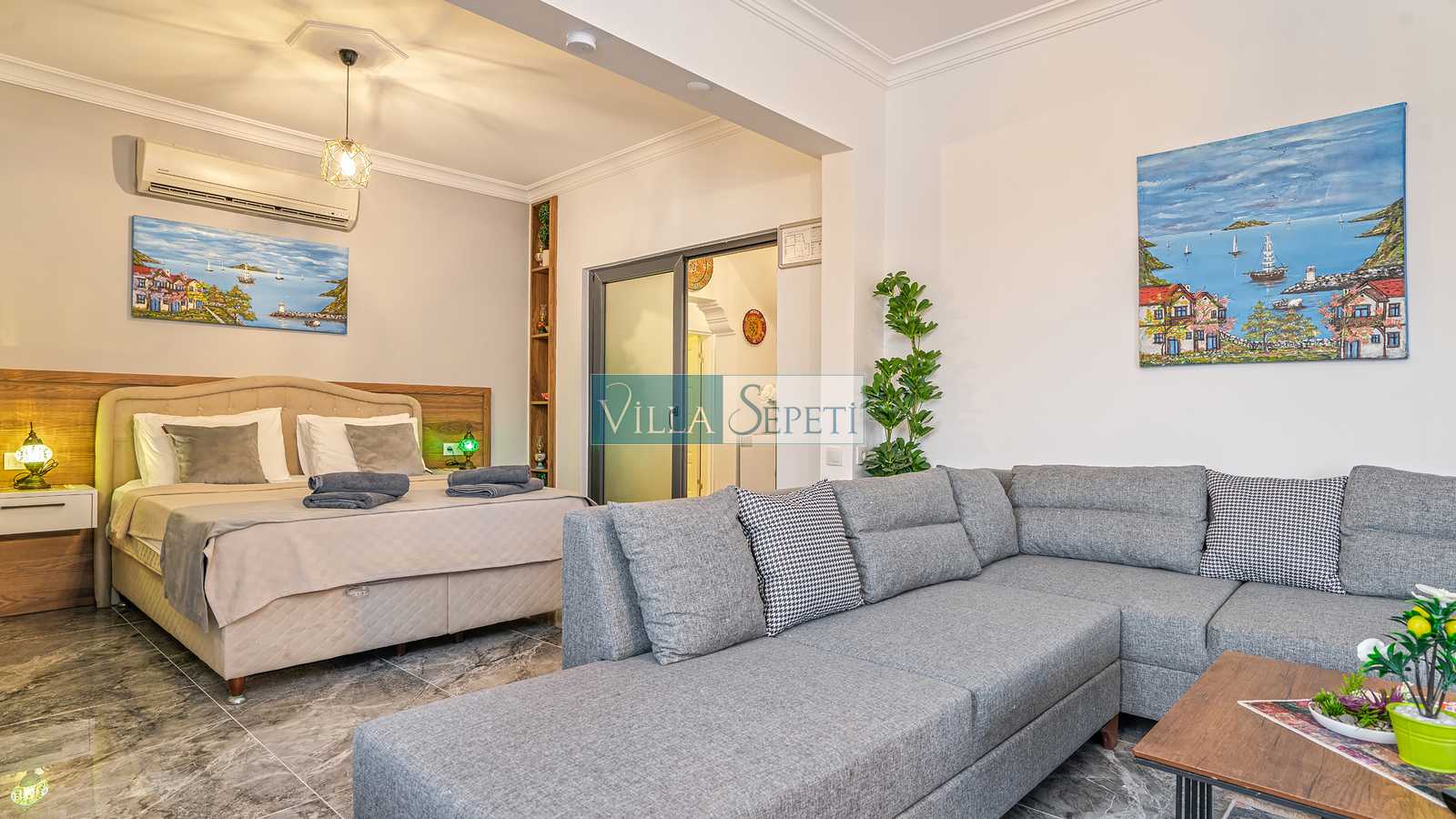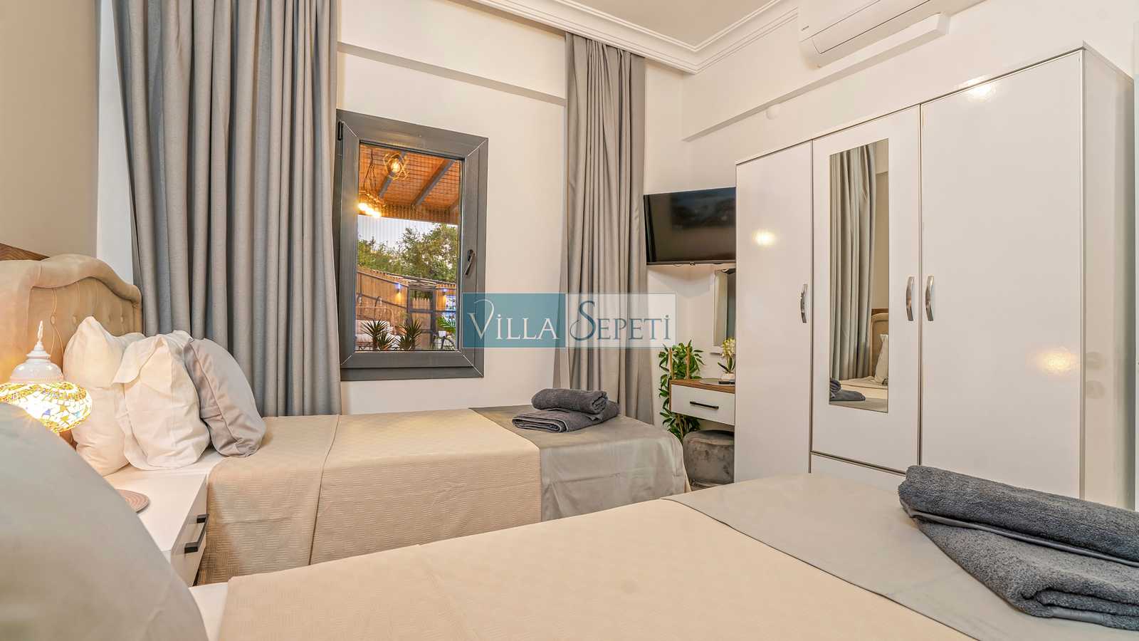 Genel not: Doğa içerisinde konuma sahip olan villalarımızın tamamı böcek ve haşereler için düzenli olarak temizlenmekte ve ilaçlanmaktadır. Doğa içerisinde konuma sahip olan evlerimizde, merkezde yer alan villalara nazaran böcek vb. çıkma ihtimali daha yüksektir. Bu not, bu evle ilgili değil doğa içerisinde konuma sahip olan tüm evlerin bilgilerinde yazılmaktadır.