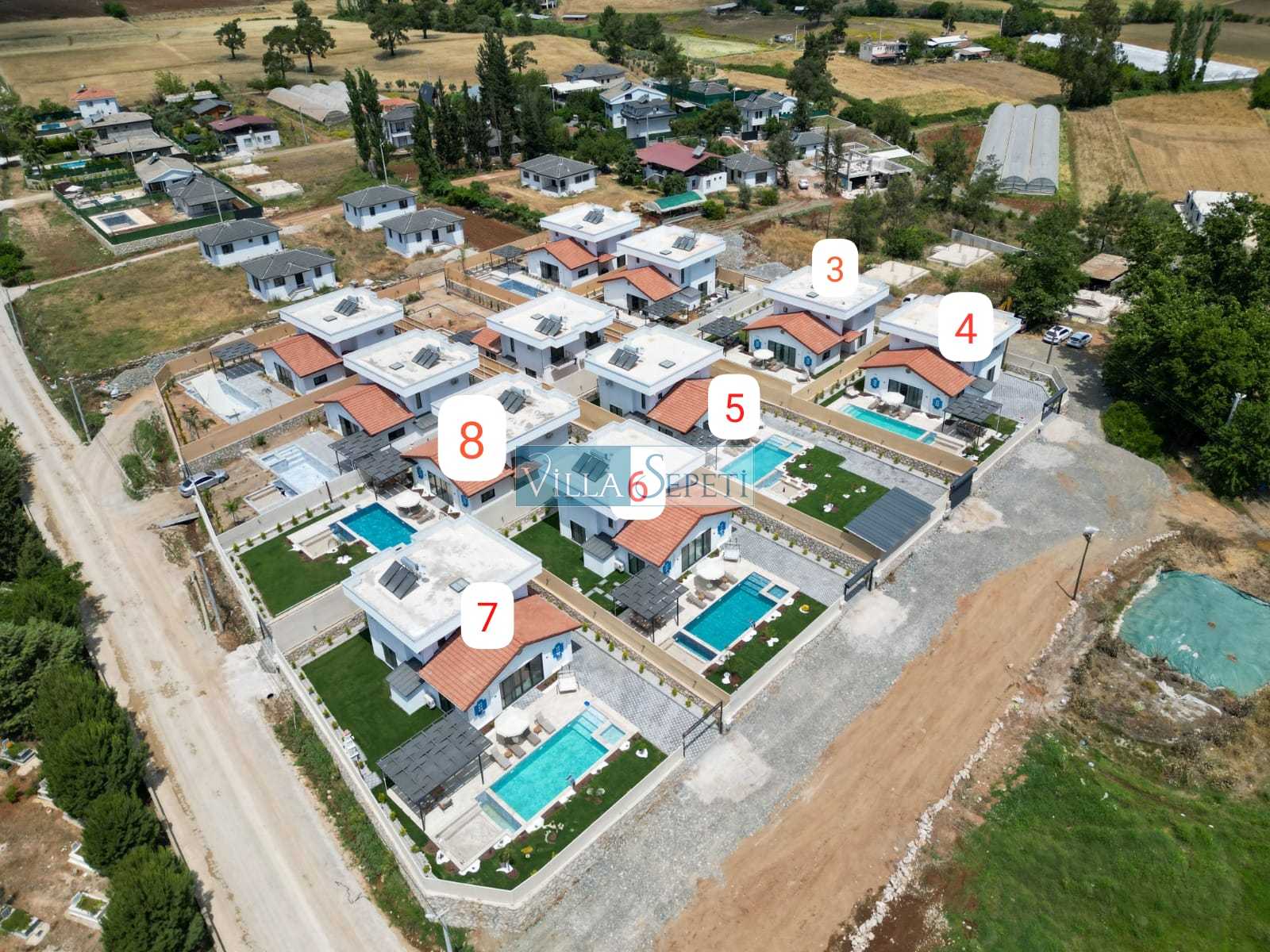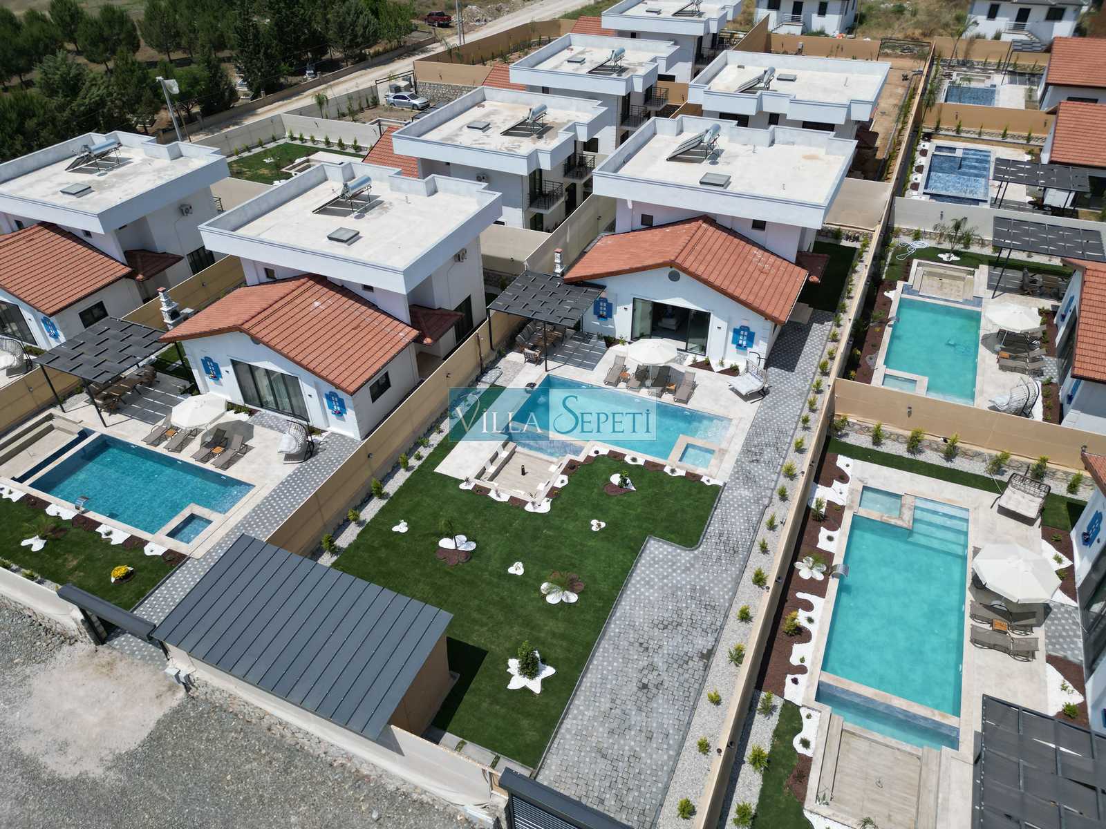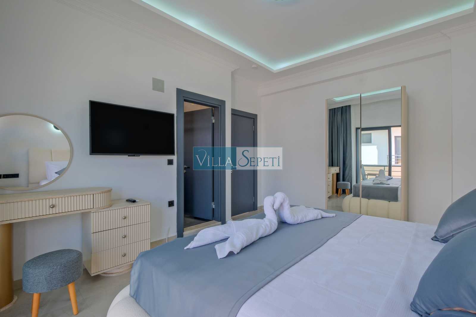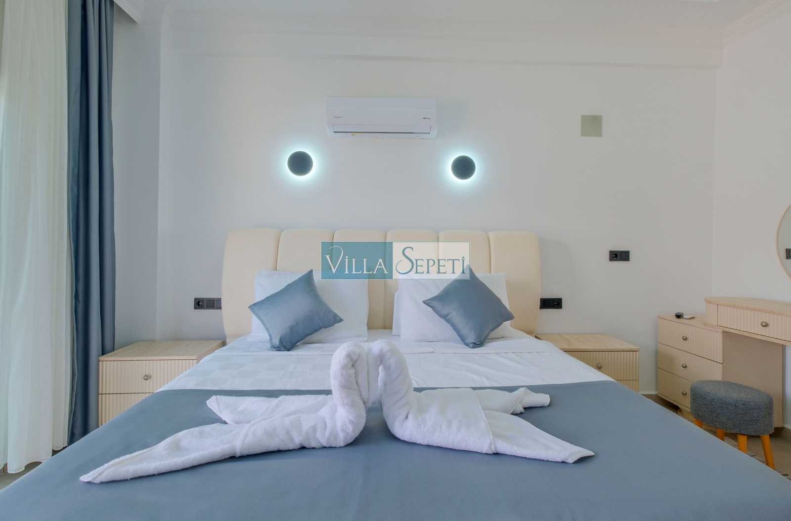 Önemli Not: Villalarımızın iç donanımları birebir aynı özelliğe sahip olup sadece mobilya renk ve detaylarda farklılık mevcuttur. Bu nedenle tek bir fotoğraf eklenmiştir. Villamızın fotoğrafları Villa Kasırga 5aittir. Her villanın bahçeleri birbirinden farklıdır.