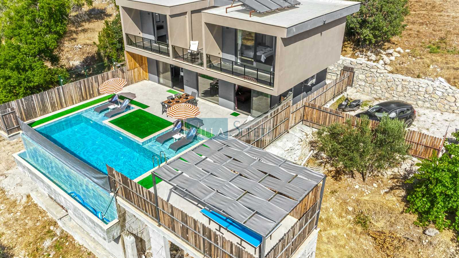 Genel not: Doğa içerisinde konuma sahip olan villalarımızın tamamı böcek ve haşereler için düzenli olarak temizlenmekte ve ilaçlanmaktadır. Doğa içerisinde konuma sahip olan evlerimizde, merkezde yer alan villalara nazaran böcek vb. çıkma ihtimali daha yüksektir. Bu not, bu evle ilgili değil doğa içerisinde konuma sahip olan tüm evlerin bilgilerinde yazılmaktadır.