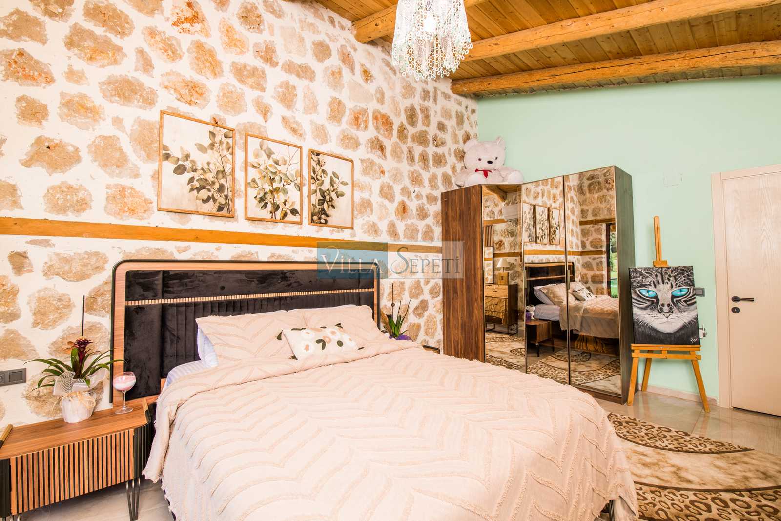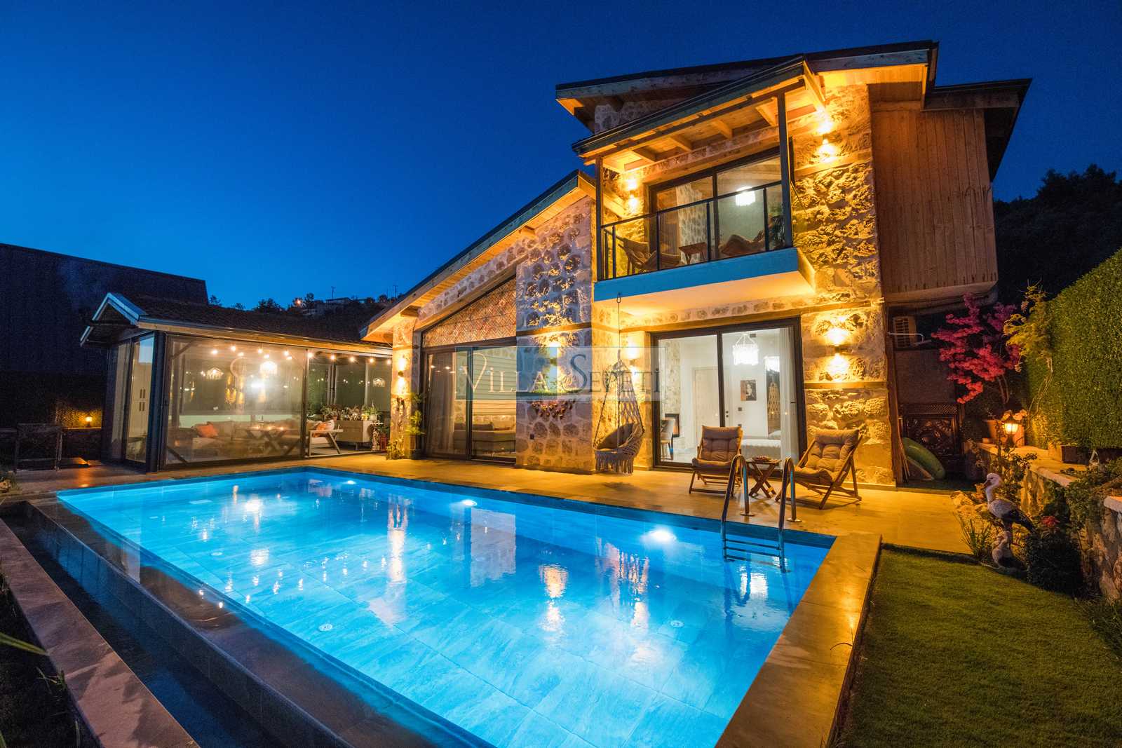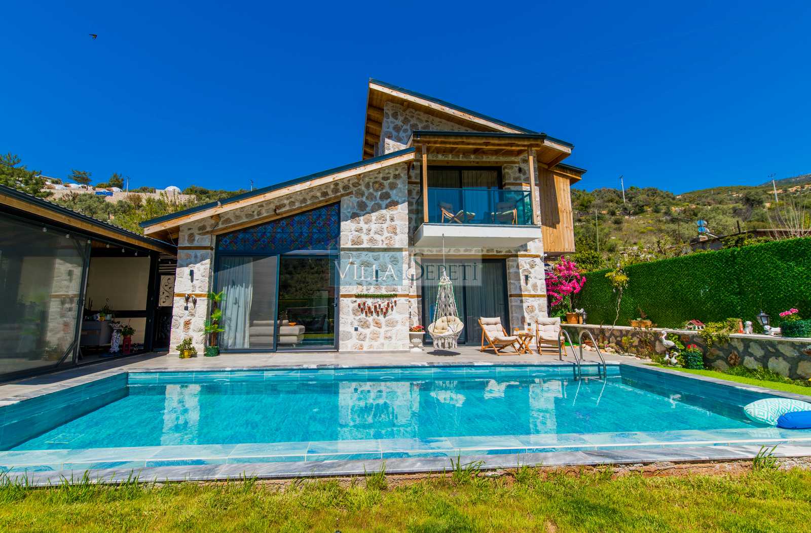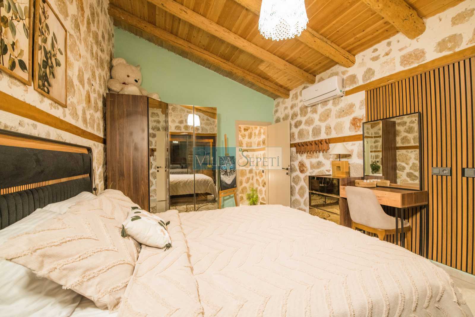 Genel not: Doğa içerisinde konuma sahip olan villalarımızın tamamı böcek ve haşereler için düzenli olarak temizlenmekte ve ilaçlanmaktadır. Doğa içerisinde konuma sahip olan evlerimizde, merkezde yer alan villalara nazaran böcek vb. çıkma ihtimali daha yüksektir. Bu not, bu evle ilgili değil doğa içerisinde konuma sahip olan tüm evlerin bilgilerinde yazılmaktadır.