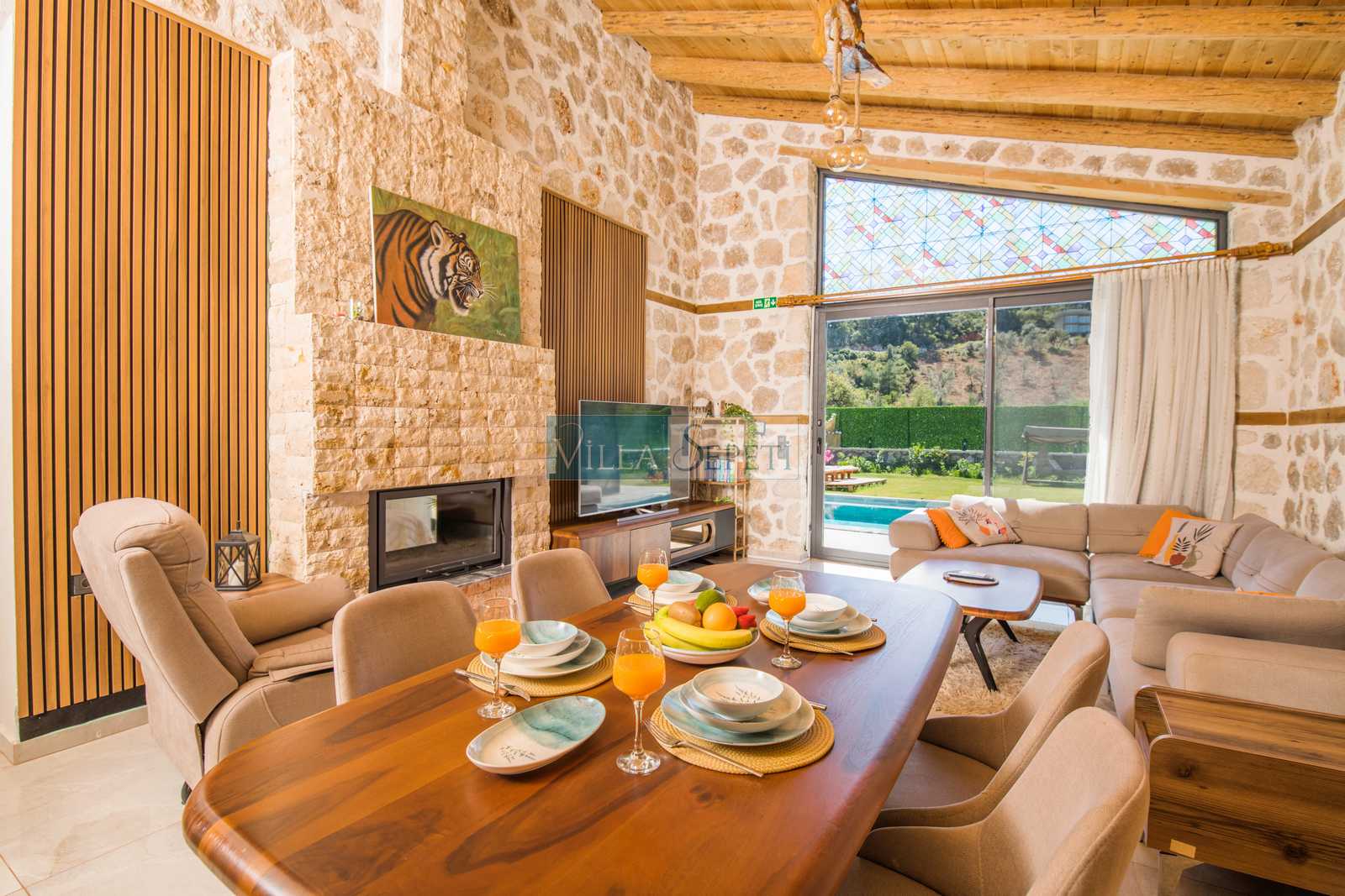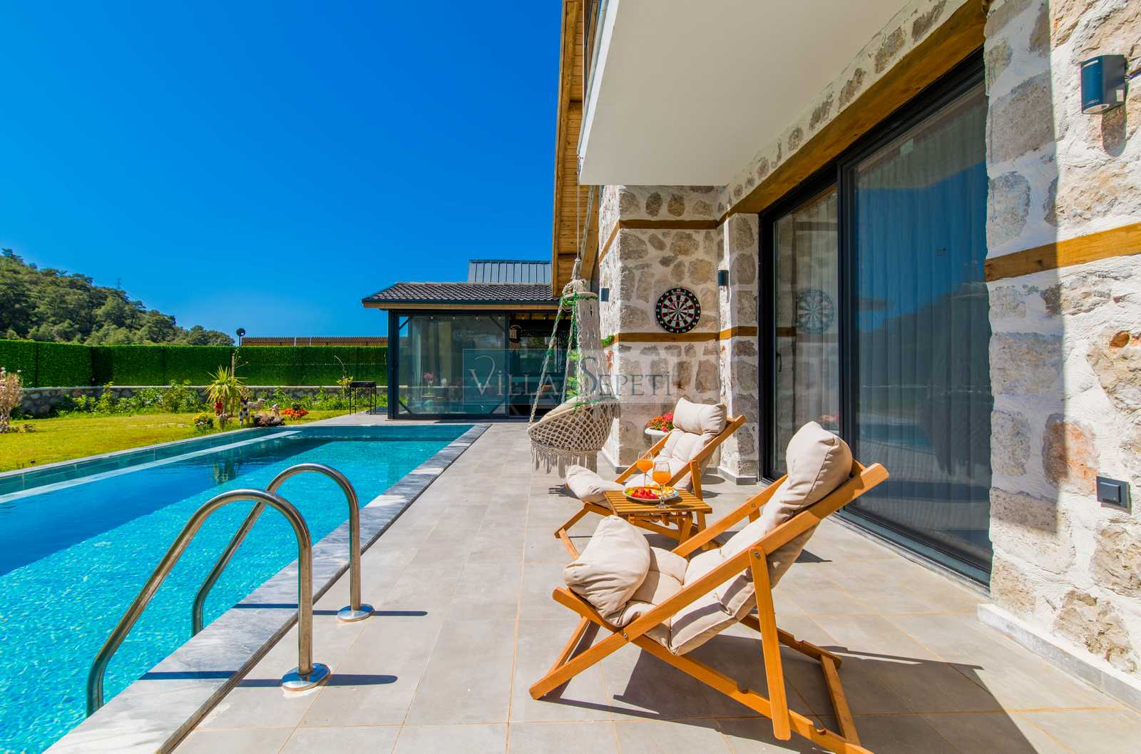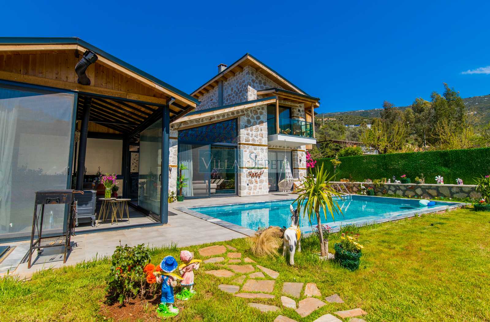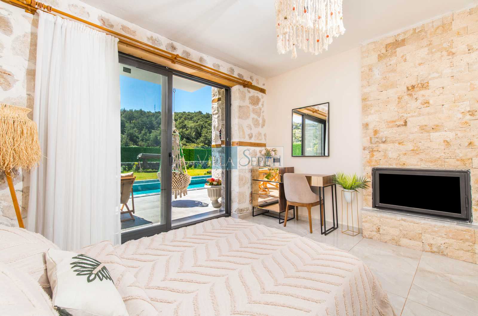 Genel not: Doğa içerisinde konuma sahip olan villalarımızın tamamı böcek ve haşereler için düzenli olarak temizlenmekte ve ilaçlanmaktadır. Doğa içerisinde konuma sahip olan evlerimizde, merkezde yer alan villalara nazaran böcek vb. çıkma ihtimali daha yüksektir. Bu not, bu evle ilgili değil doğa içerisinde konuma sahip olan tüm evlerin bilgilerinde yazılmaktadır.
