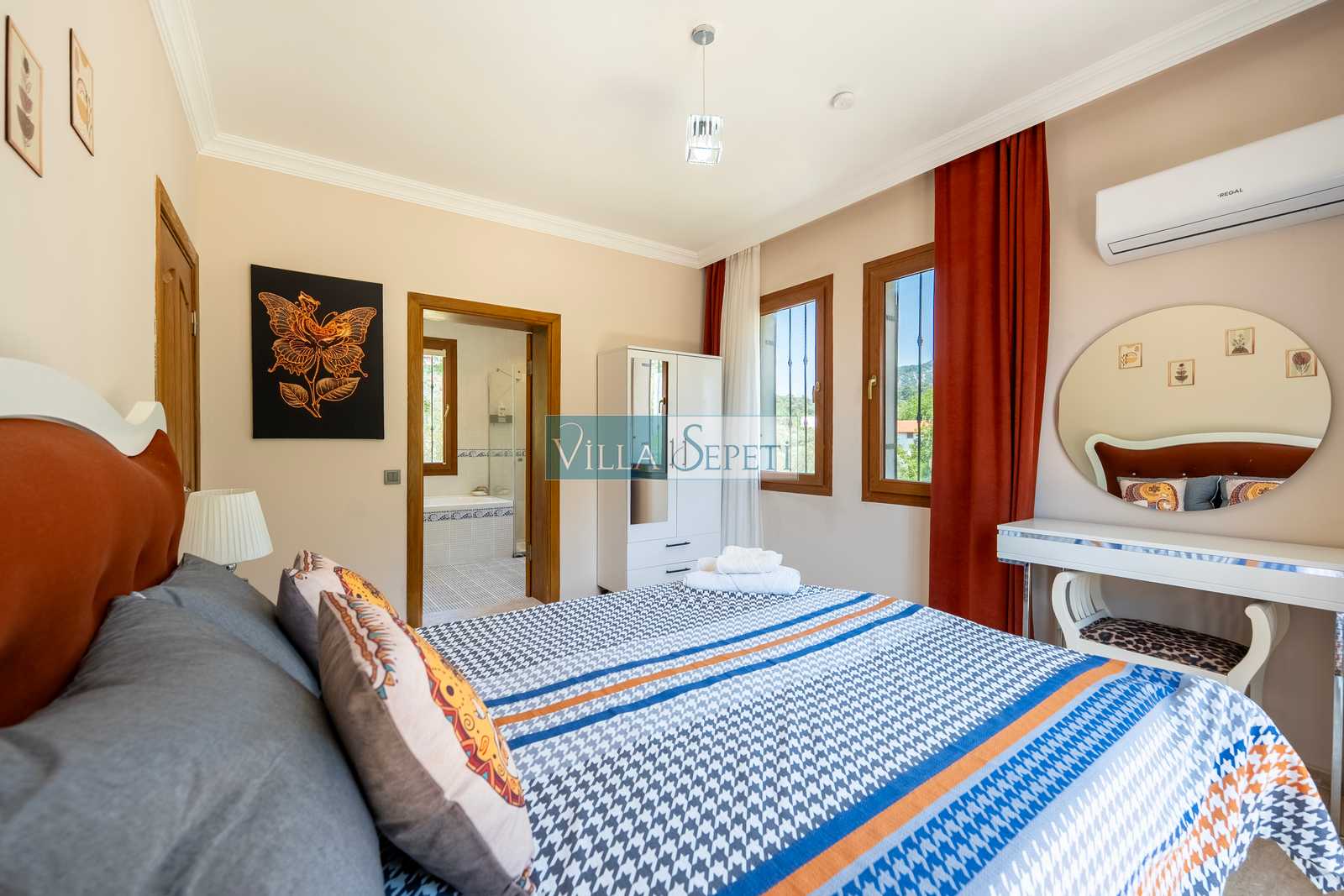 Genel not : Doğa içerisinde konuma sahip olan villalarımızın tamamı böcek ve haşereler için düzenli olarak temizlenmekte ve ilaçlanmaktadır. Doğa içerisinde konuma sahip olan evlerimizde, merkezde yer alan villalara nazaran böcek vb. çıkma ihtimali daha yüksektir. Bu not, bu evle ilgili değil doğa içerisinde konuma sahip olan tüm evlerin bilgilerinde yazılmaktadır.