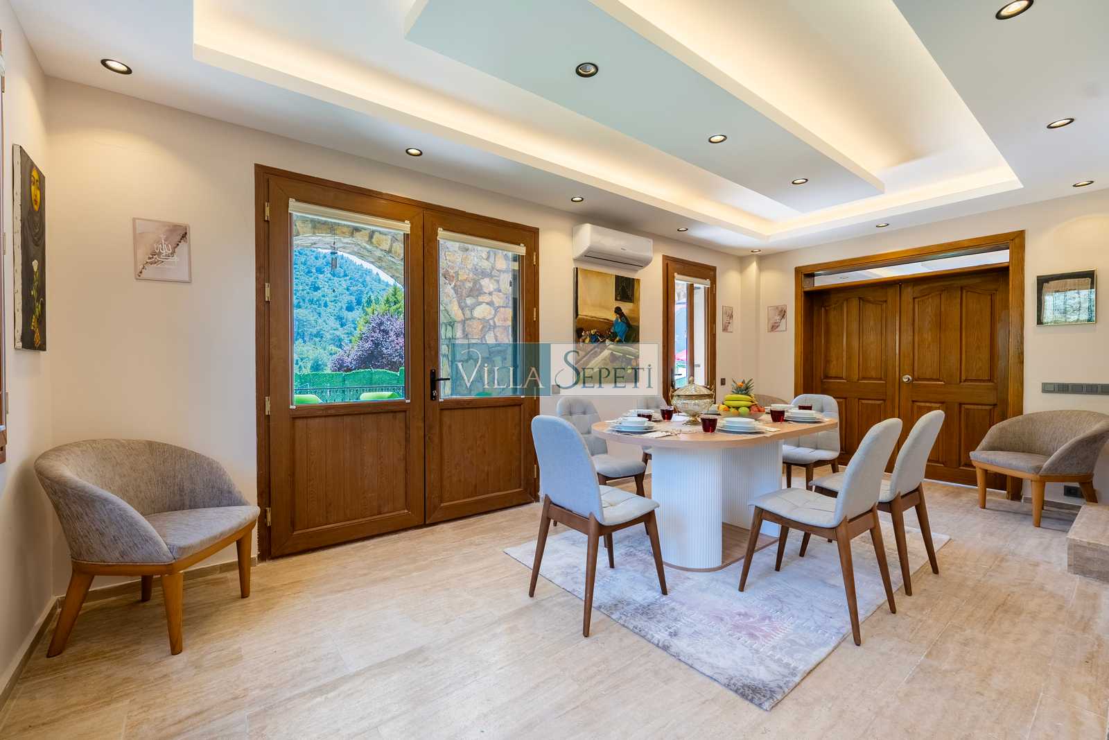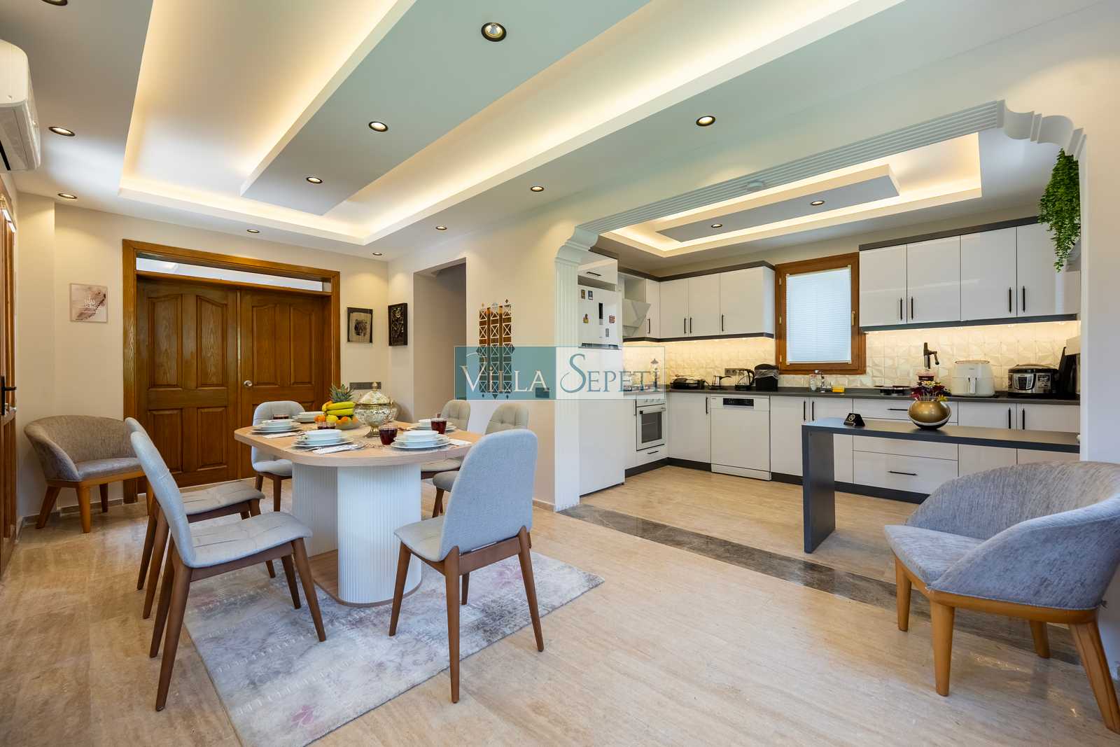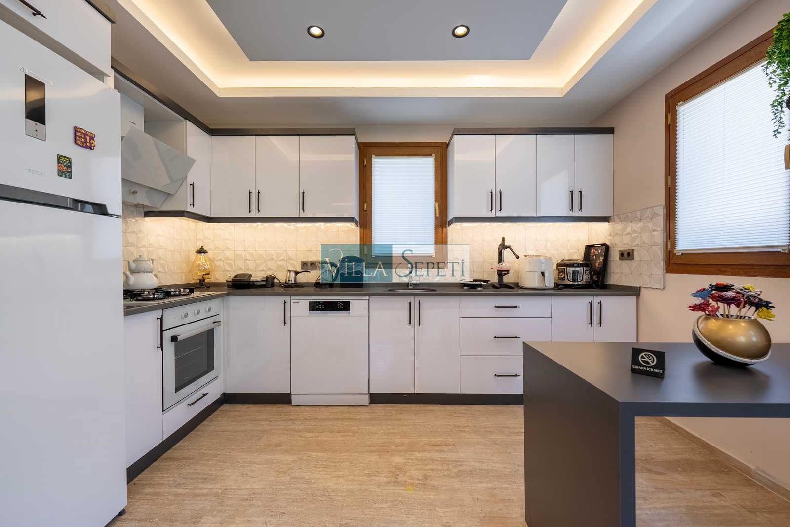 Yaz ayları dışında yörelerde yeni villa inşaatları olabilmektedir. Bu sebepten etrafta gürültü olması muhtemeldir. Bu not, bu eve özgü değildir, kışın faal olan tüm evlerde bulunmaktadır. Not: Mutfak salondan bağımsızdır.
