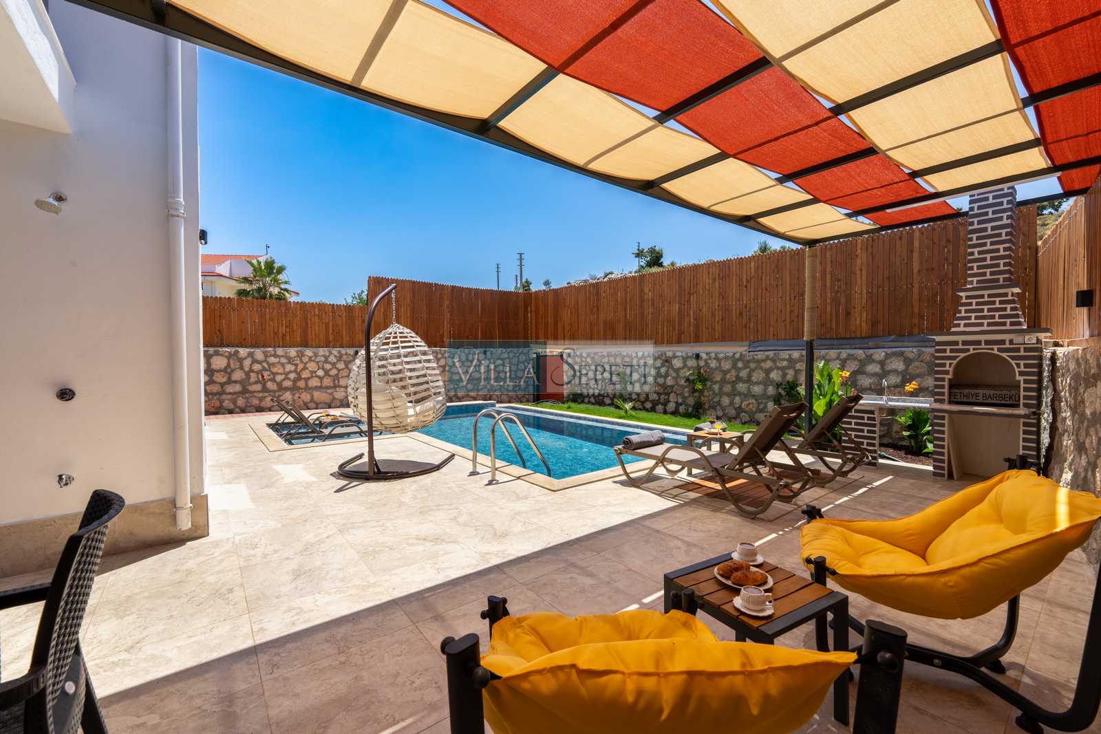 Genel not: Doğa içerisinde konuma sahip olan villalarımızın tamamı böcek ve haşereler için düzenli olarak temizlenmekte ve ilaçlanmaktadır. Doğa içerisinde konuma sahip olan evlerimizde, merkezde yer alan villalara nazaran böcek vb. çıkma ihtimali daha yüksektir. Bu not, bu evle ilgili değil doğa içerisinde konuma sahip olan tüm evlerin bilgilerinde yazılmaktadır.