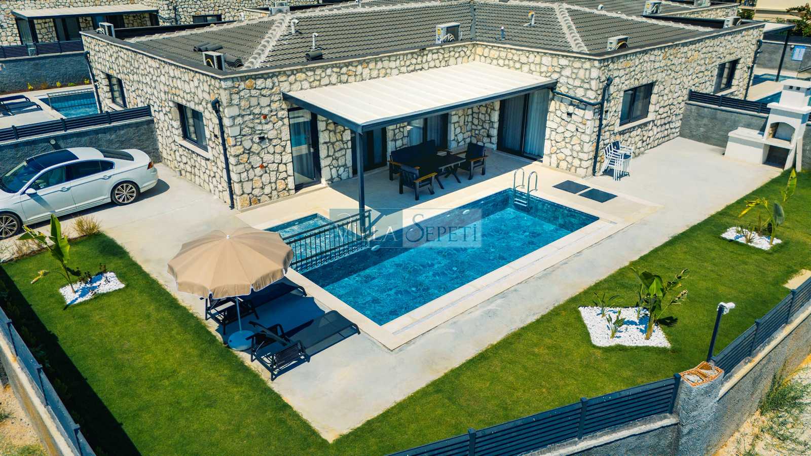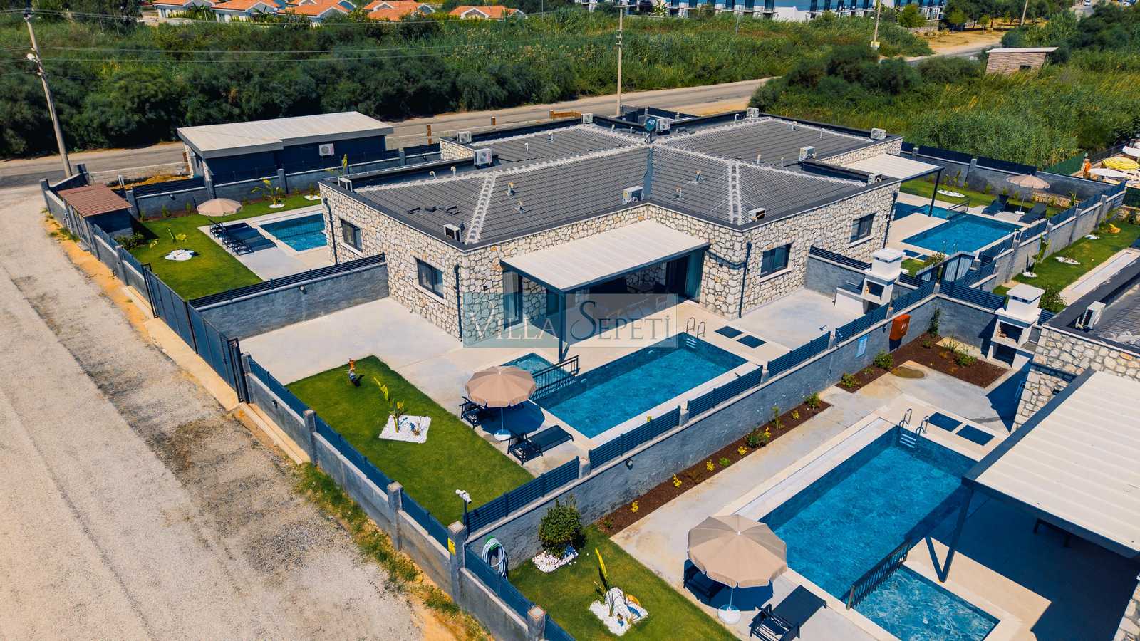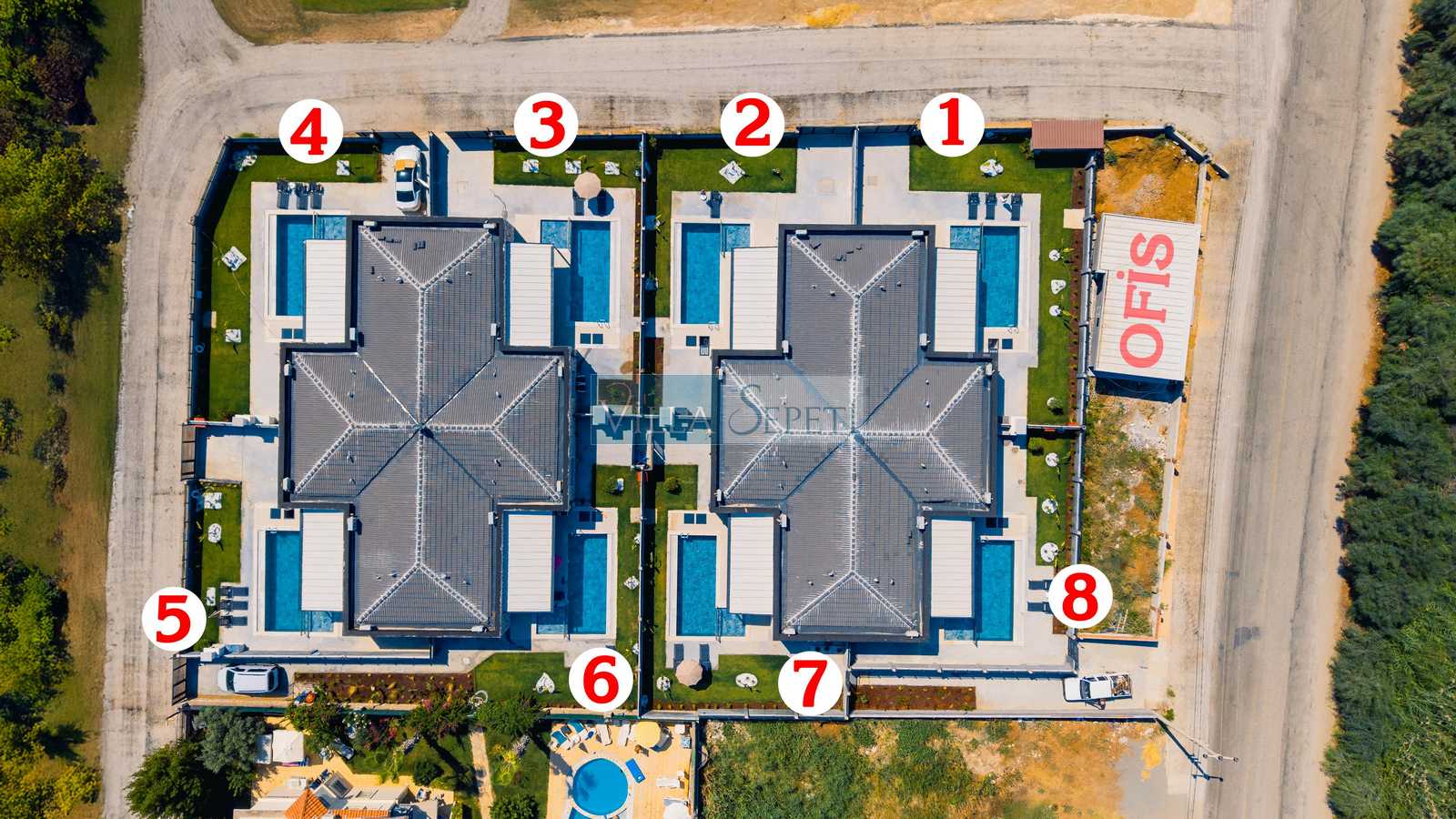 Önemli Not : 8 villadan oluşan kompleksimiz de tek çekim kullanılmış olup iç detayları tamamen aynıdır. Sadece havuz terası ve yeşil çim alanlarında farklılık bulunmaktadır. Bazı çim alanları küçük bazıları ise nispeten geniştir.