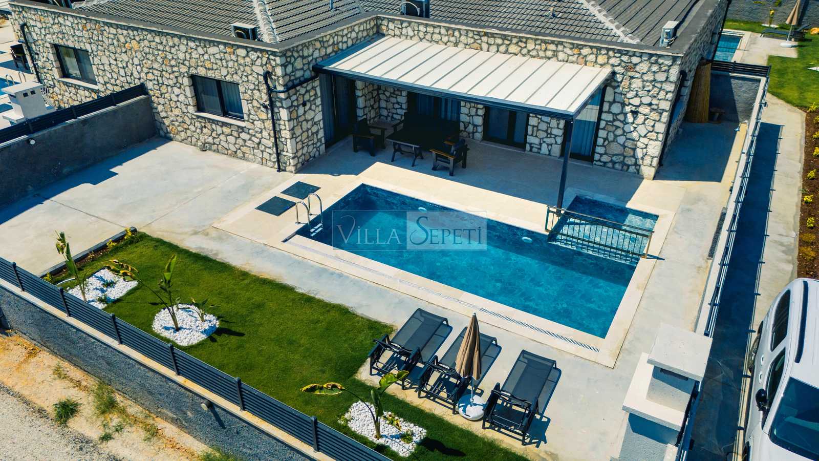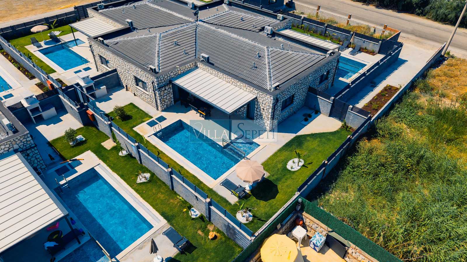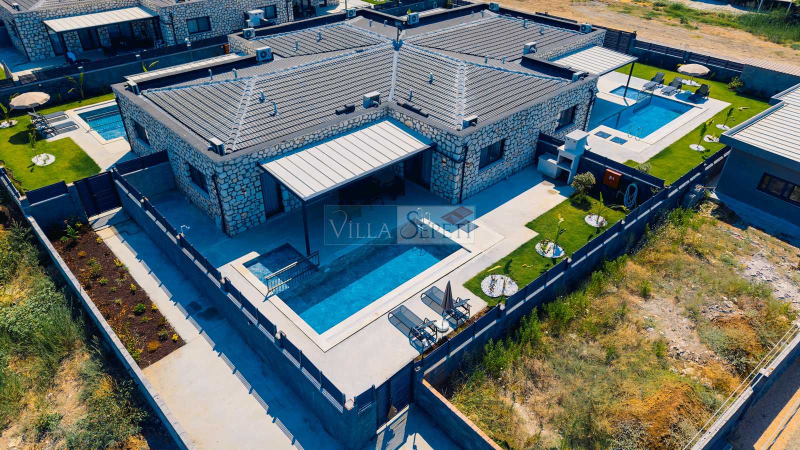 Önemli Not : 8 villadan oluşan kompleksimiz de tek çekim kullanılmış olup iç detayları tamamen aynıdır. Sadece havuz terası ve yeşil çim alanlarında farklılık bulunmaktadır. Bazı çim alanları küçük bazıları ise nispeten geniştir.
