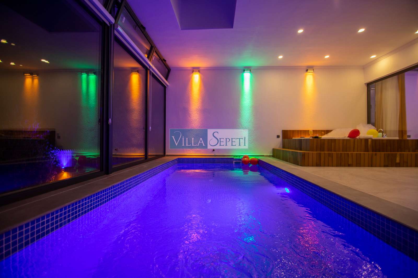 Isıtmalı iç havuzun boyutları 2.5 m x 5.5 m olup, derinliği ise 120 cm'dir.