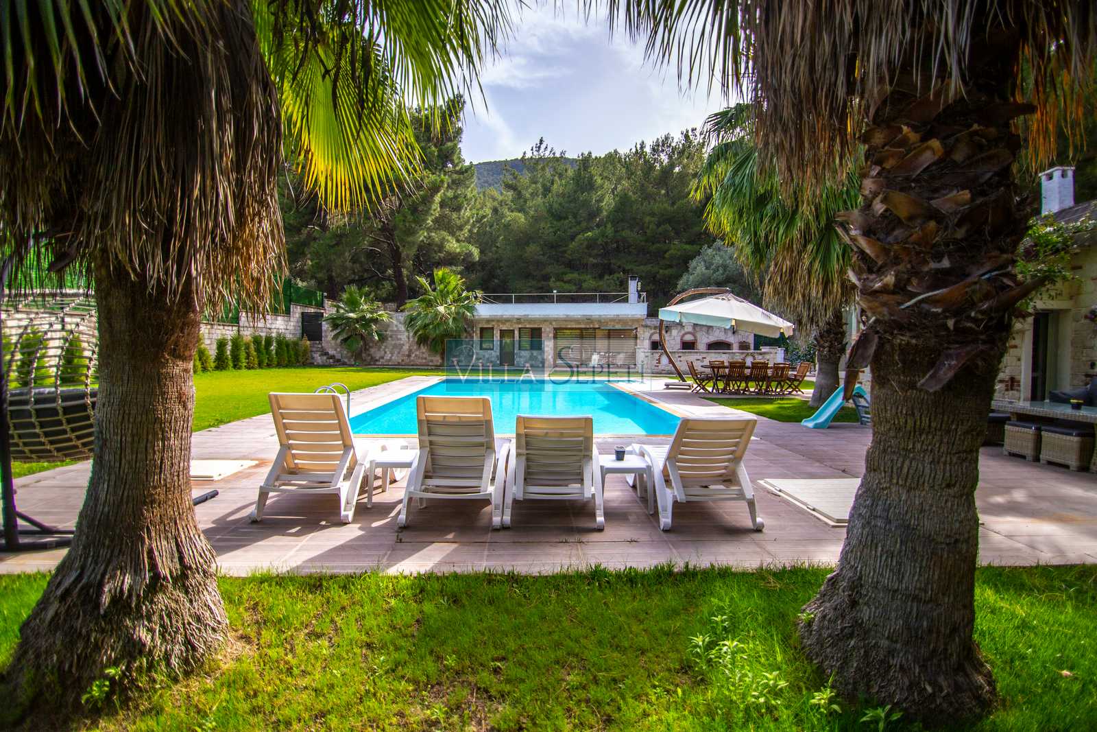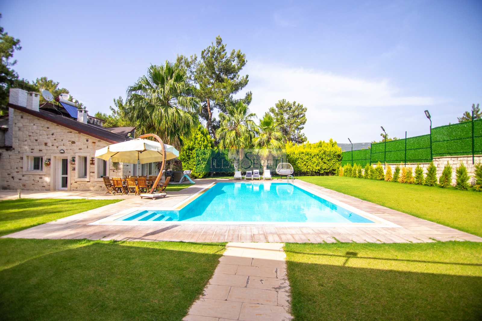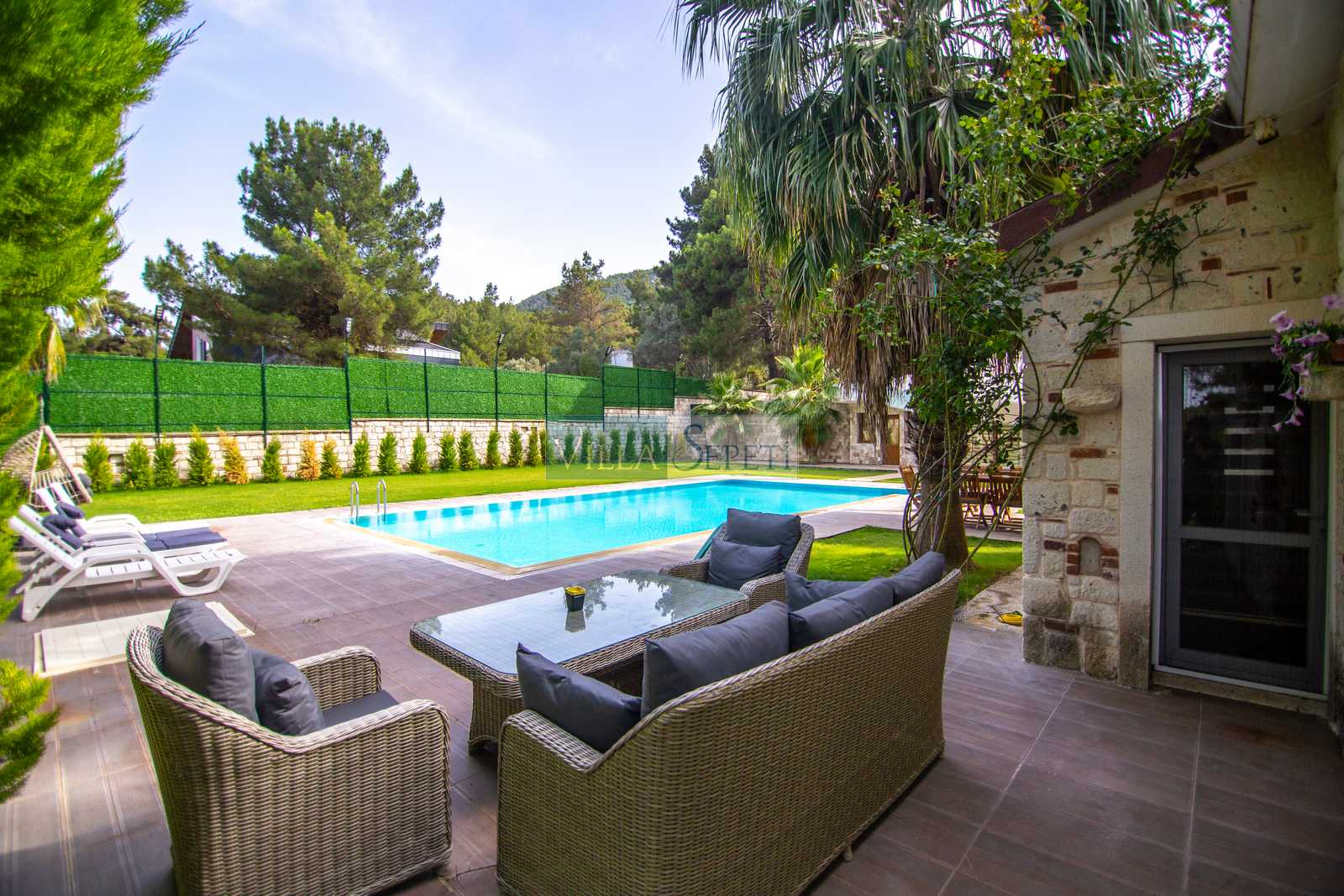 Bu evimiz bir site içerisinde yer almaktadır ve sitenin en üst mevkiinde çok özel bir konuma sahiptir. Çam ağaçları ile kaplı, 3700 m2 araziye sahip olan villamızın oldukça geniş, 12m. x 6m. büyüklüğünde müstakil yüzme havuzu bulunmaktadır.