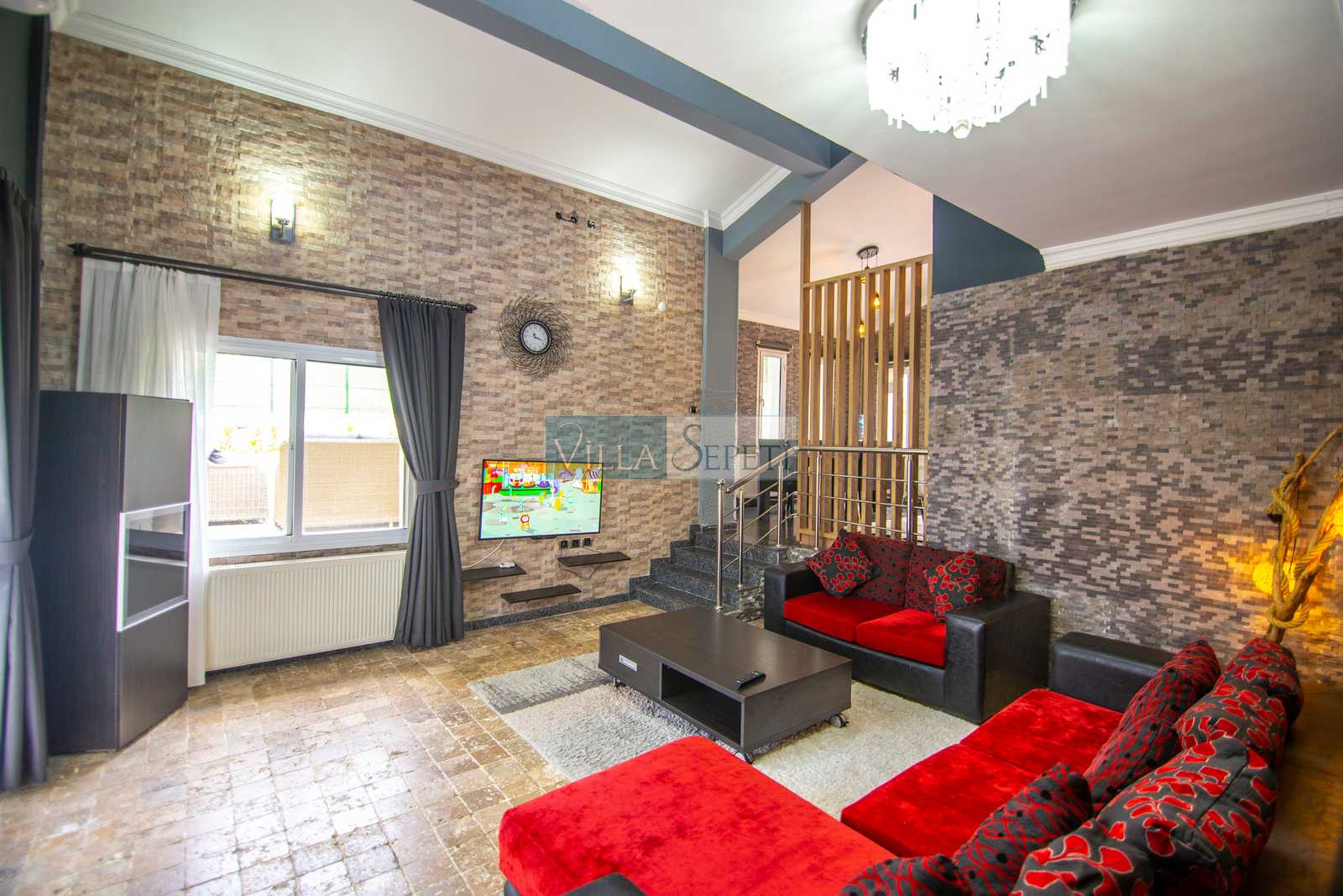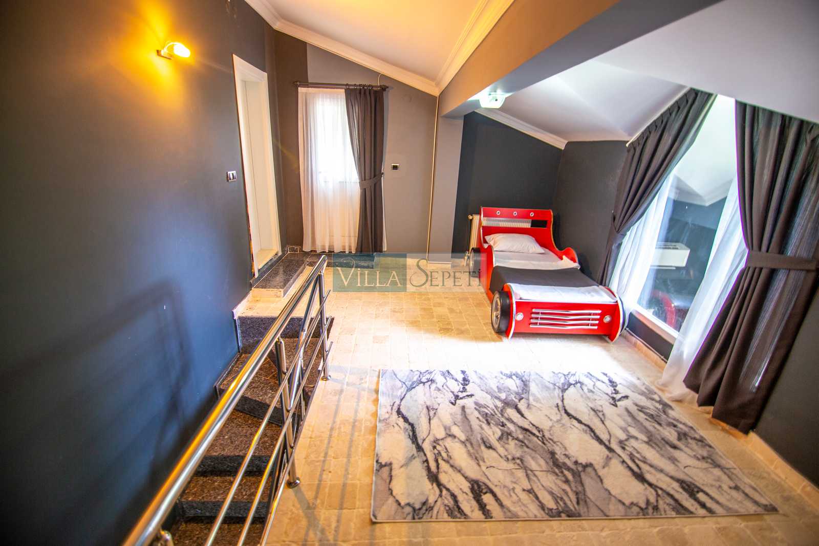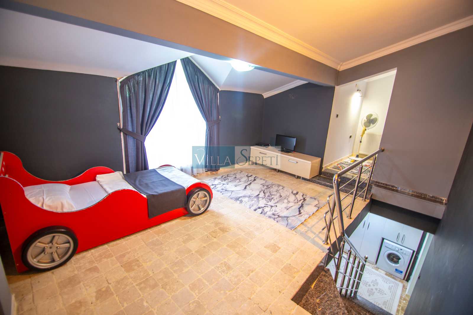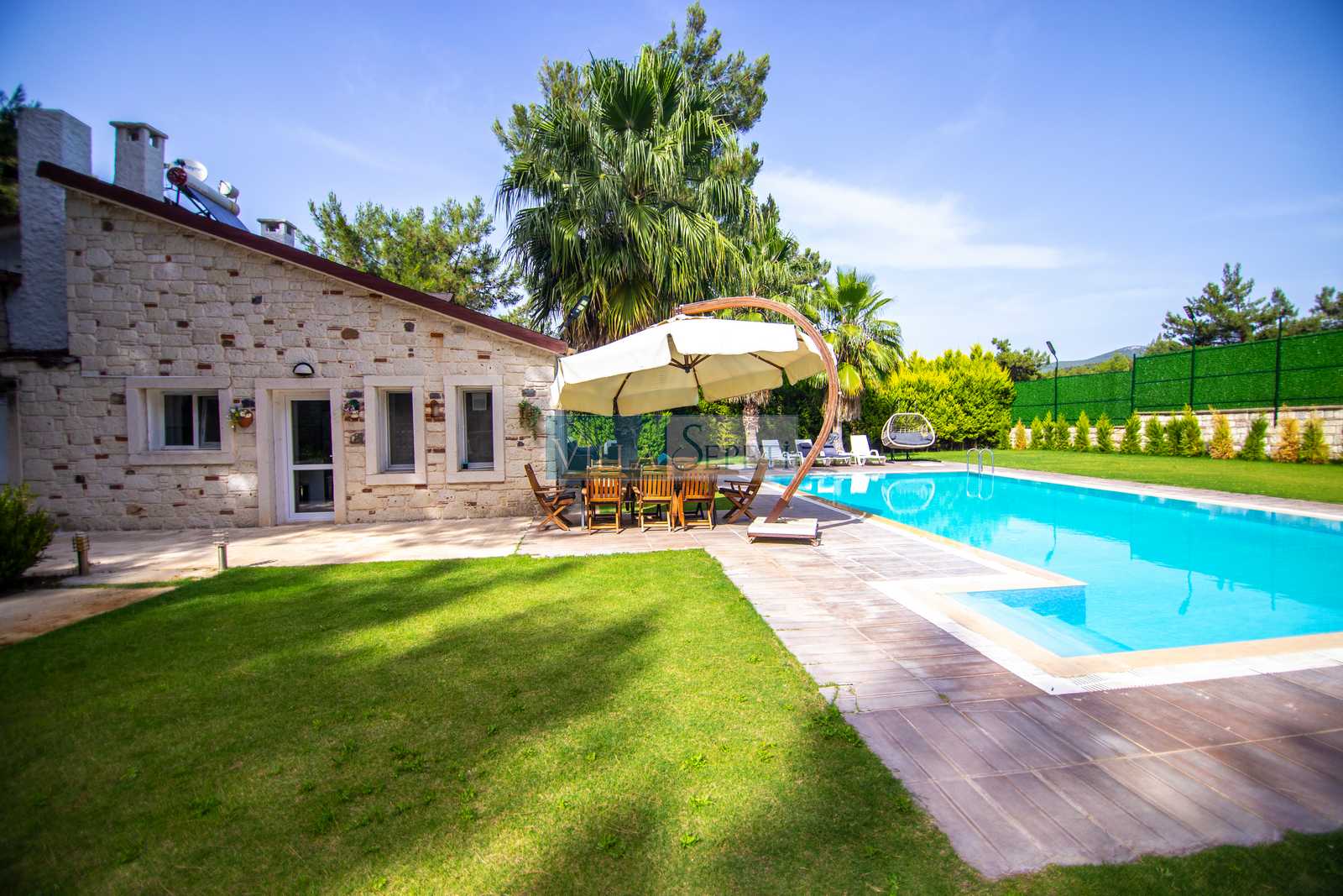Bu evimiz bir site içerisinde yer almaktadır ve sitenin en üst mevkiinde çok özel bir konuma sahiptir. Çam ağaçları ile kaplı, 3700 m2 araziye sahip olan villamızın oldukça geniş, 12m. x 6m. büyüklüğünde müstakil yüzme havuzu bulunmaktadır.