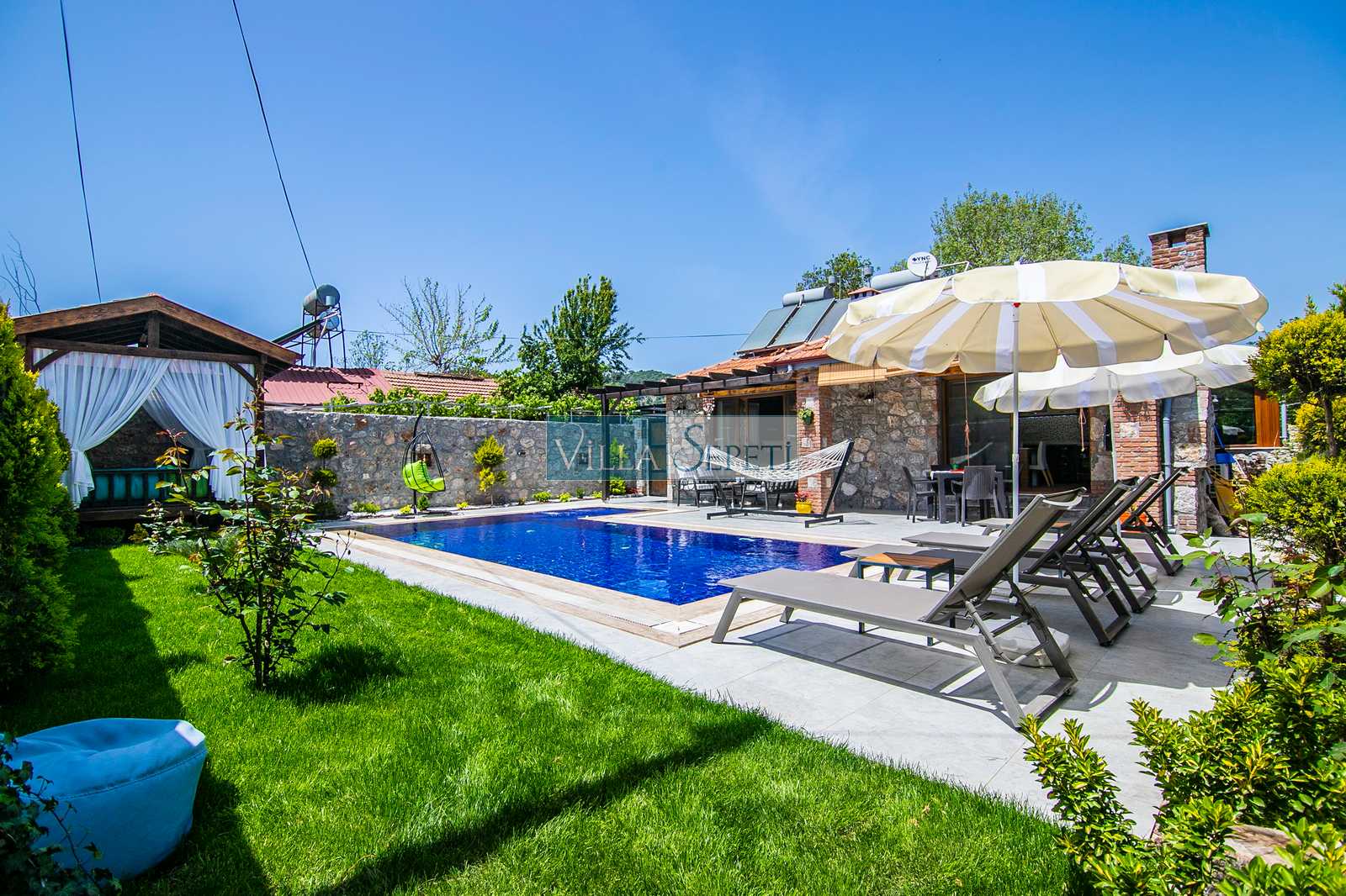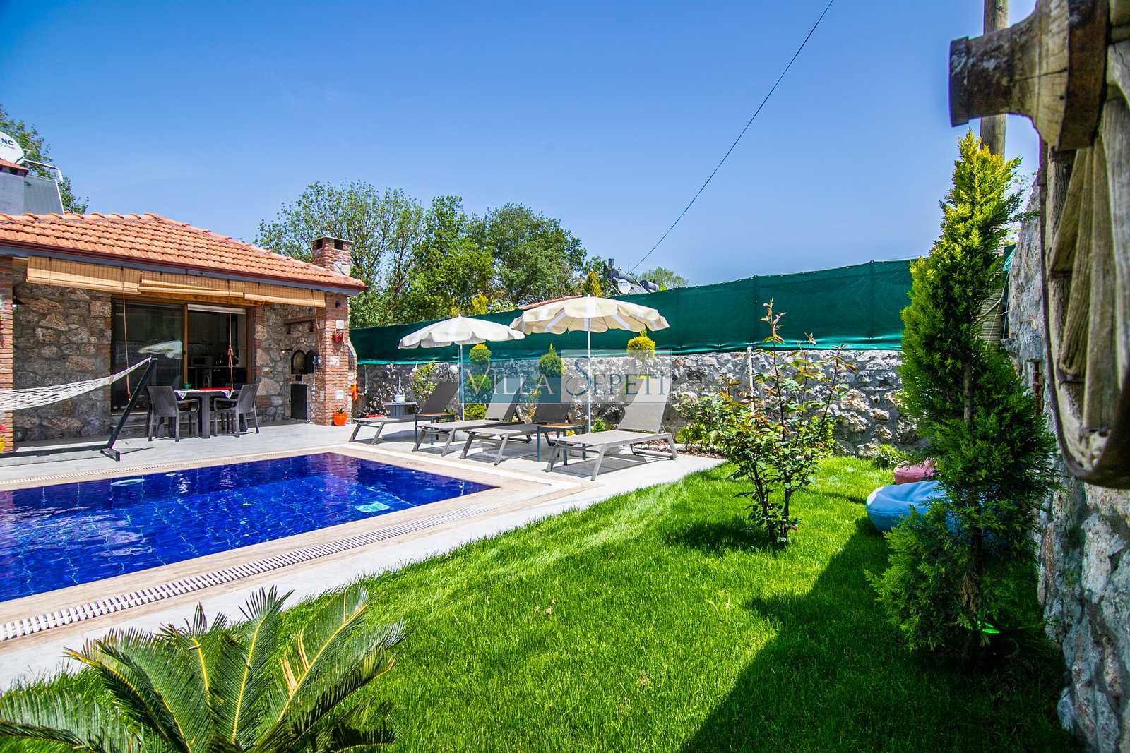 Genel not : Doğa içerisinde konuma sahip olan villalarımızın tamamı böcek ve haşereler için düzenli olarak temizlenmekte ve ilaçlanmaktadır. Doğa içerisinde konuma sahip olan evlerimizde, merkezde yer alan villalara nazaran böcek vb. çıkma ihtimali daha yüksektir. Bu not, bu evle ilgili değil doğa içerisinde konuma sahip olan tüm evlerin bilgilerinde yazılmaktadır.