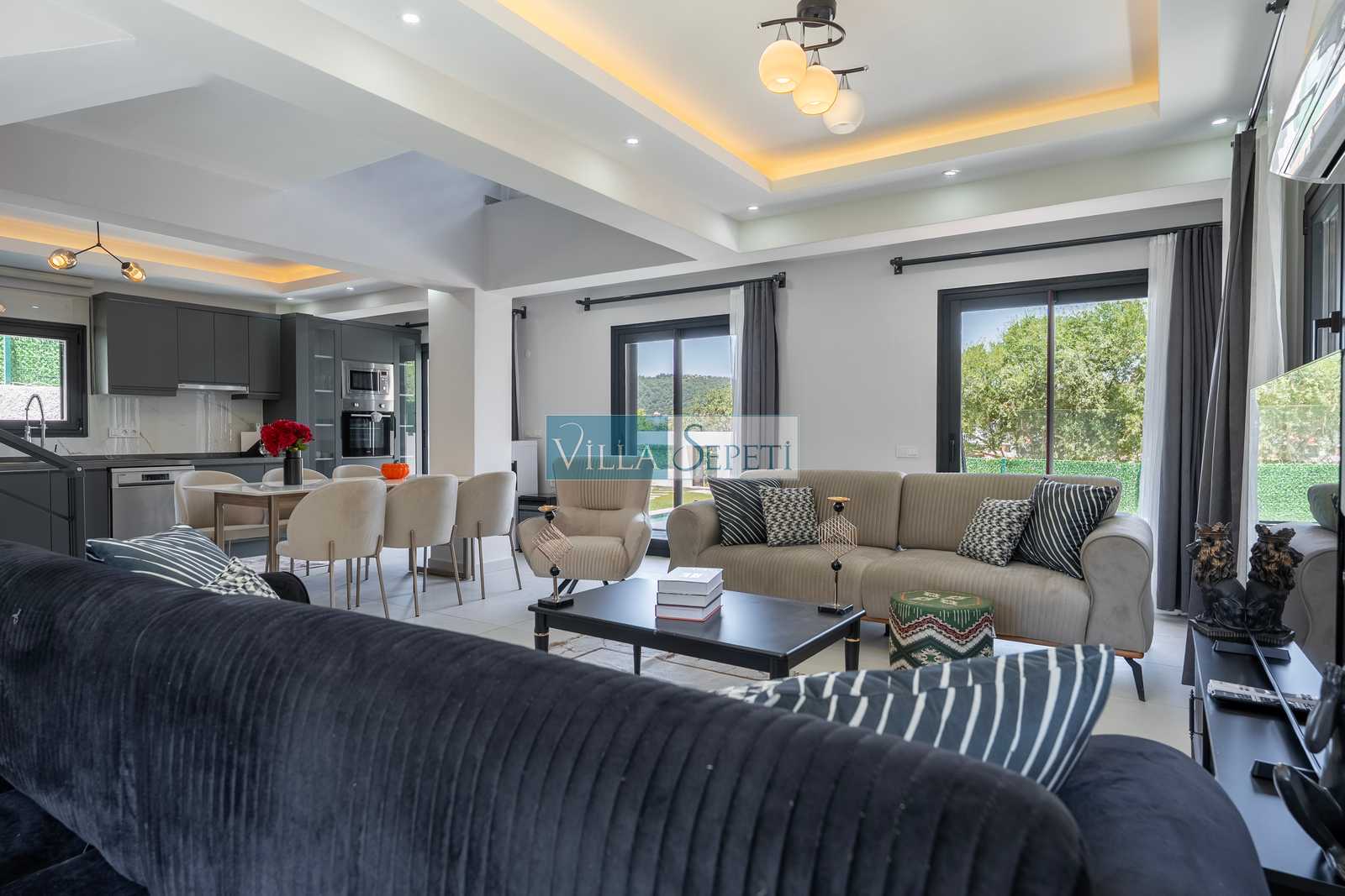 Bu evimizin yan tarafında aynı mimariye sahip Lumiere İnfinity 1 ve Villa Lumiere Maison 2 ve Villa Lumiere Azur 4 yer almaktadır. Takvimlerinde müsaitlik olduğu takdirde villalar da aynı anda konaklama imkanınız bulunmaktadır.