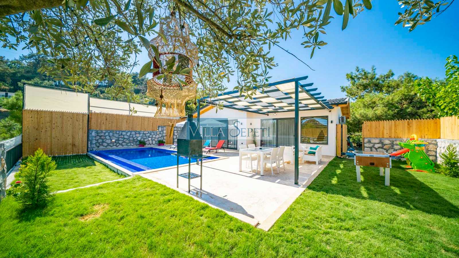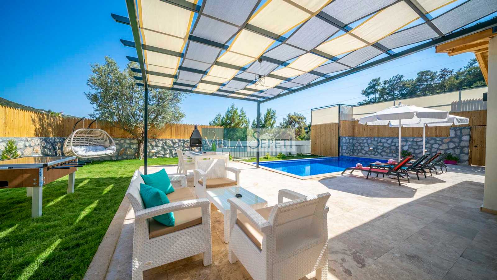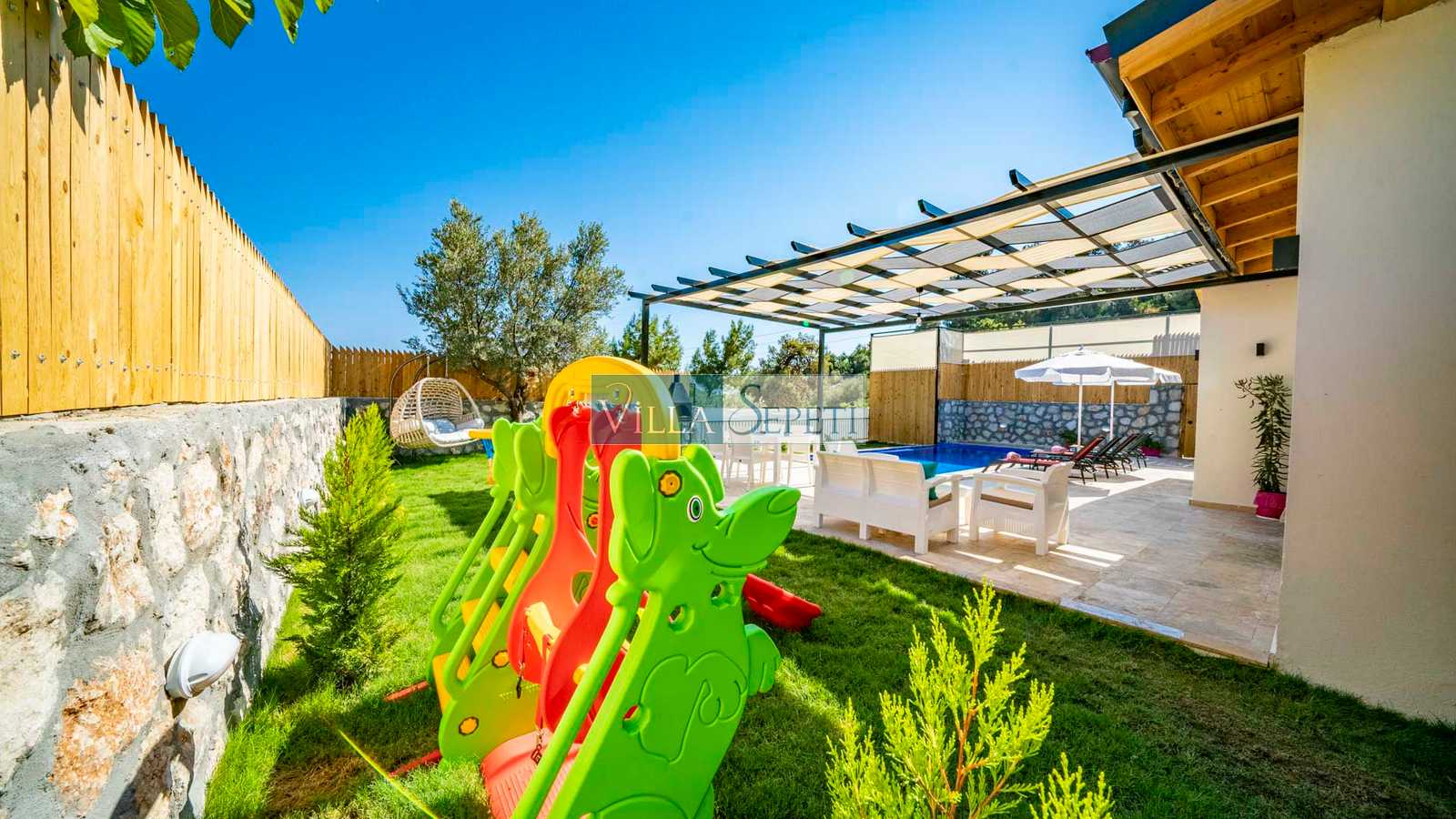 Villa Nairobi, Kalkan İslamlar mevkiinde yer alan, özel havuzu tam korunaklı villamızdır. İki yatak odasında sahip olan villamız yeşil bahçe alanına sahiptir. İçerisinde yer alan eğlence imkanları sayesinde ise çocuklu ailelere oldukça uygun bir seçenektir. Kaliteli ve konforlu iç dizaynı ile sizlere rahat bir tatil imkanı sunmaktadır.