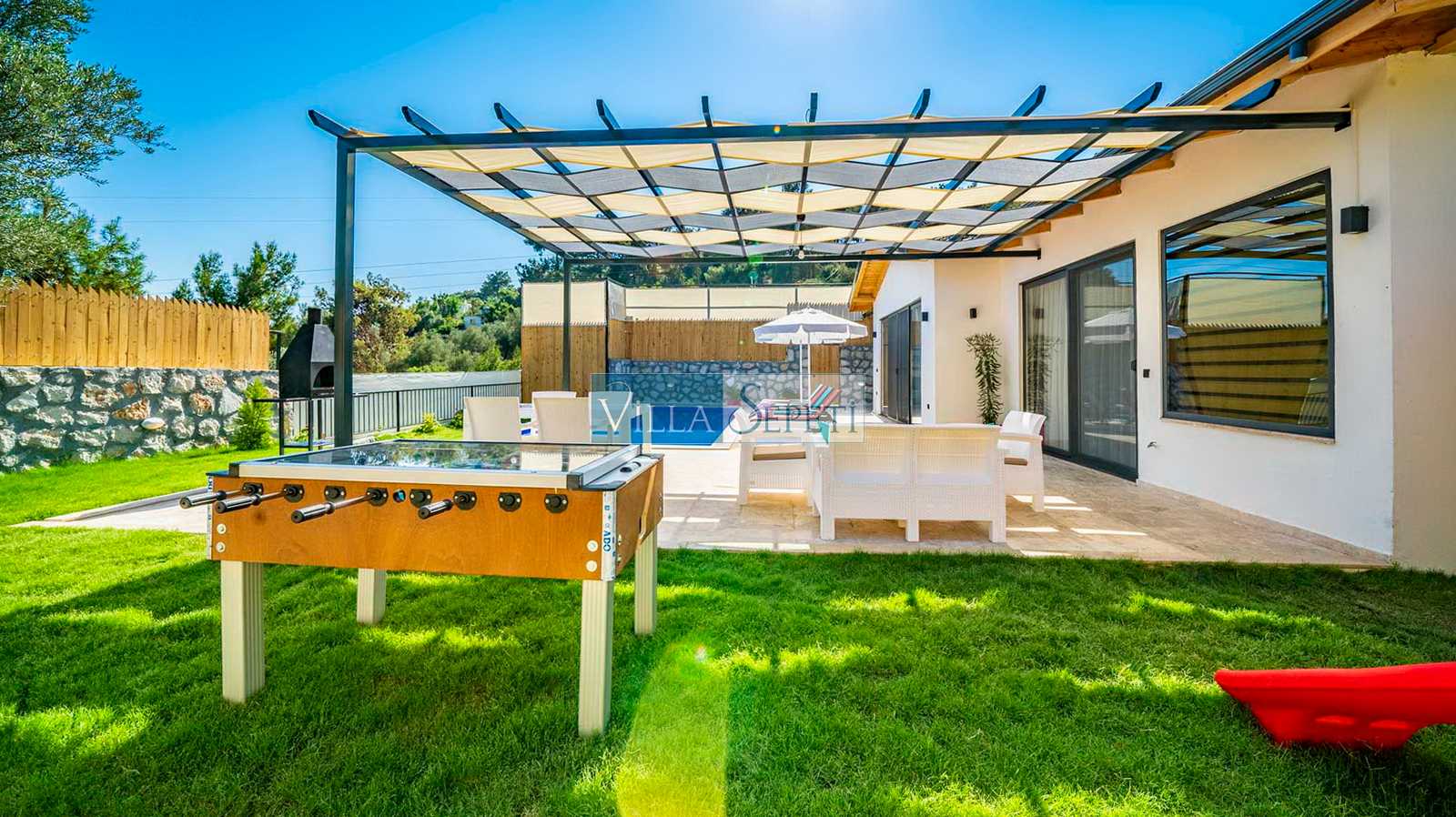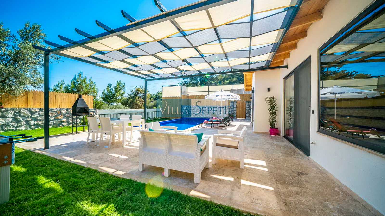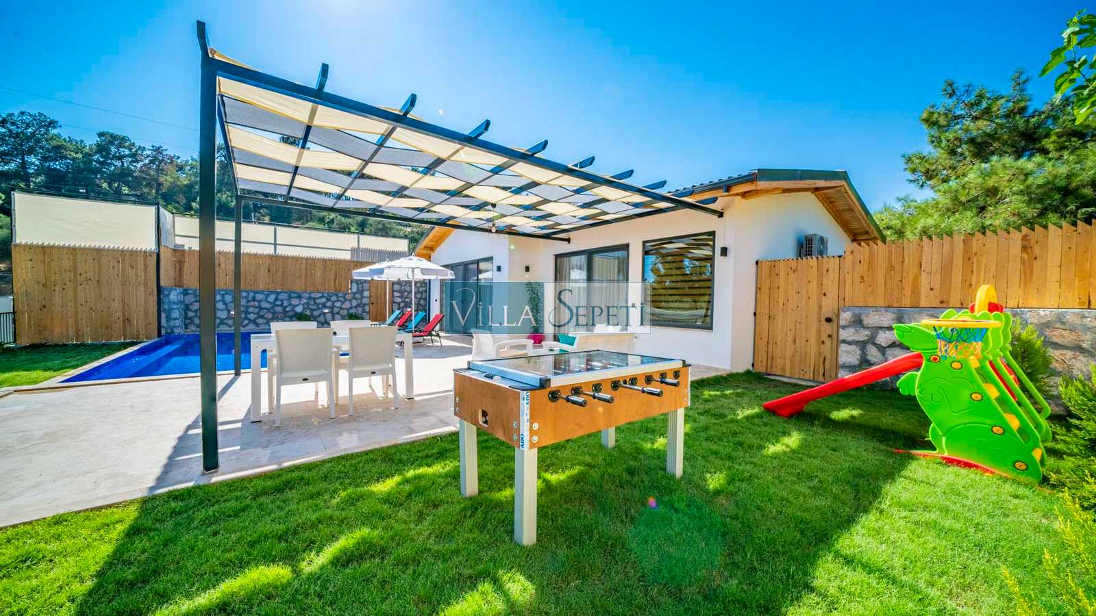 Villa Nairobi, Kalkan İslamlar mevkiinde yer alan, özel havuzu tam korunaklı villamızdır. İki yatak odasında sahip olan villamız yeşil bahçe alanına sahiptir. İçerisinde yer alan eğlence imkanları sayesinde ise çocuklu ailelere oldukça uygun bir seçenektir. Kaliteli ve konforlu iç dizaynı ile sizlere rahat bir tatil imkanı sunmaktadır.