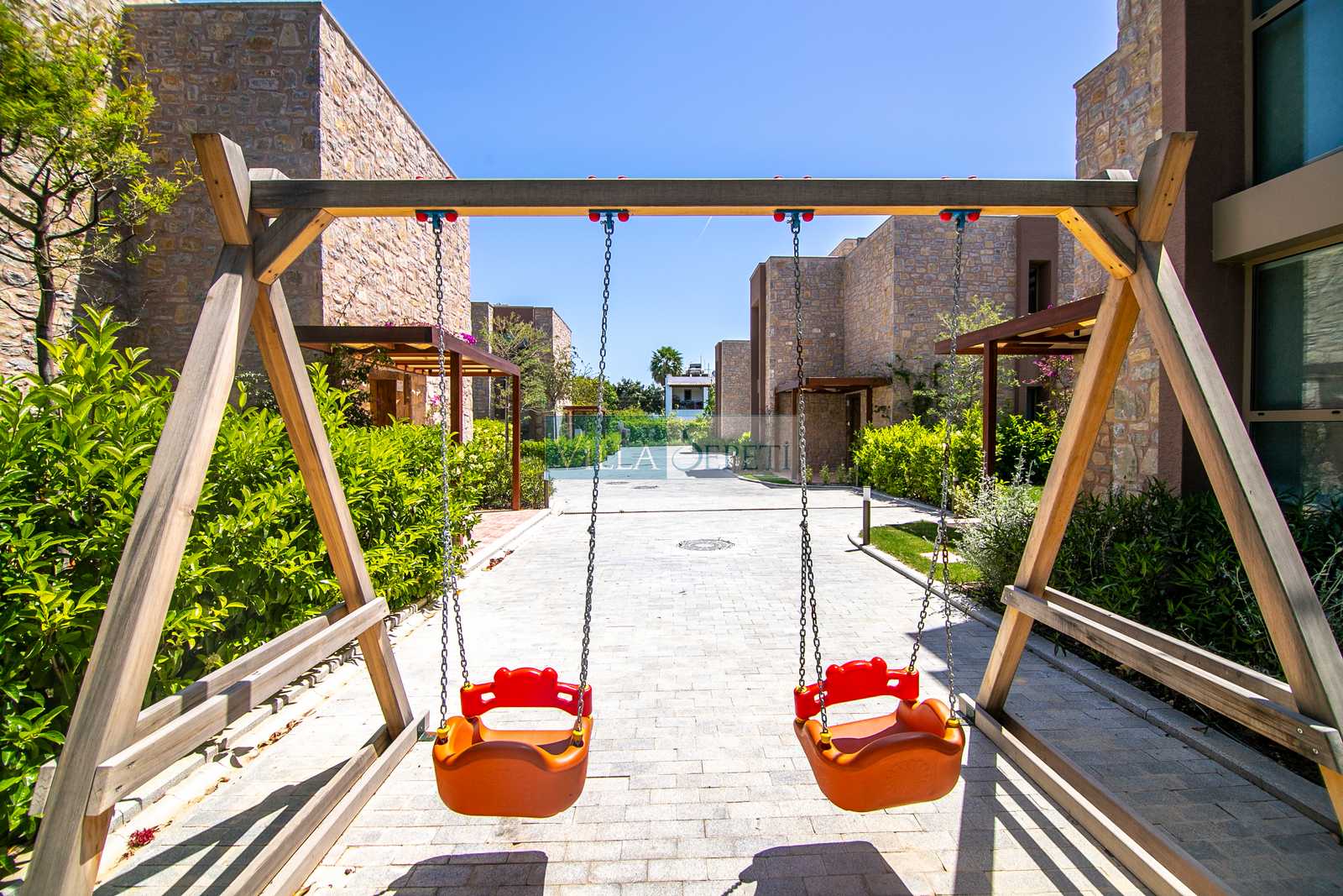 Geniş ve bakımlı bahçe alanı, tatilinizin tadını çıkarmanız için mükemmel bir atmosfer sunmaktadır. Bahçede yer alan şık kamelya, misafirlerin gölgede dinlenebileceği bir alan oluştururken, özel yüzme havuzu sıcak yaz günlerinde serinleme imkânı sunar. Site içerisinde bulunan iki adet çocuk salıncağı, özellikle küçük misafirler için keyifli vakit geçirme imkânı sağlamaktadır.
