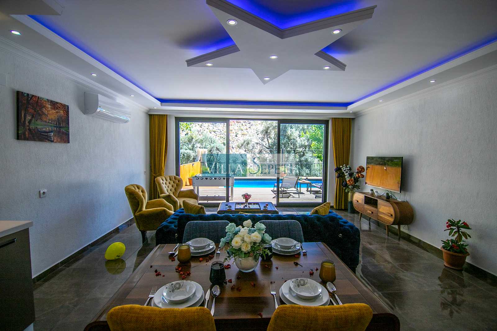 Sistemimizde yer alan Villa Sarissa ile villamız yakın konumlanmaktadır. İkisini aynı anda kiralama imkanı bulunmaktadır.