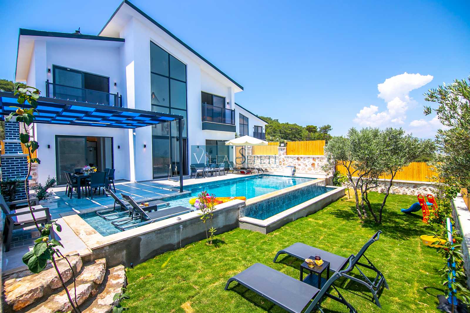 Villa Kartın Dubleks 1, Kalkan Yeşilköy’de, tam korunaklı özel havuzu ile konforlu bir tatil sunuyor. Modern tasarımıyla, geniş aileler, çekirdek aileler ve balayı misafirleri için ideal bir seçenek. Doğayla iç içe konumu, misafirlerimize sessiz ve sakin bir tatil deneyimi sağlıyor.