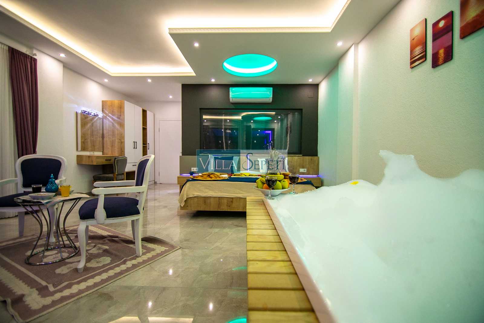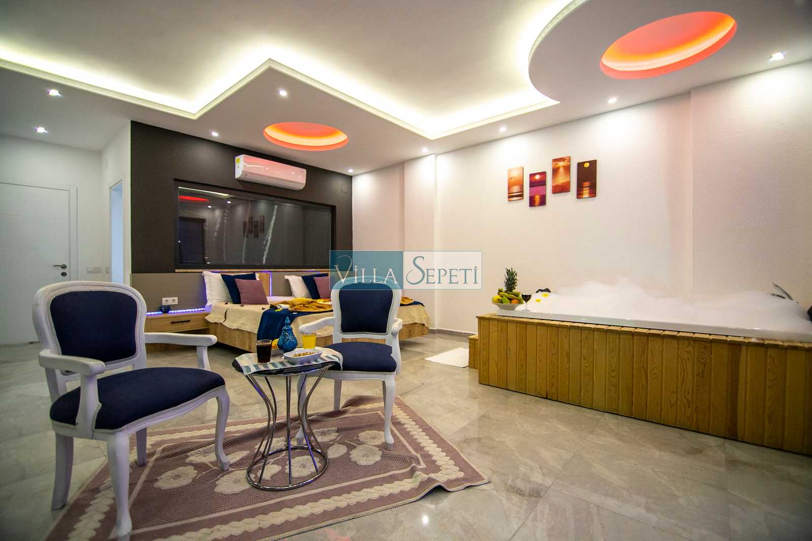 Genel not: Doğa içerisinde konuma sahip olan villalarımızın tamamı böcek ve haşereler için düzenli olarak temizlenmekte ve ilaçlanmaktadır. Doğa içerisinde konuma sahip olan evlerimizde, merkezde yer alan villalara nazaran böcek vb. çıkma ihtimali daha yüksektir. Bu not, bu evle ilgili değil doğa içerisinde konuma sahip olan tüm evlerin bilgilerinde yazılmaktadır.